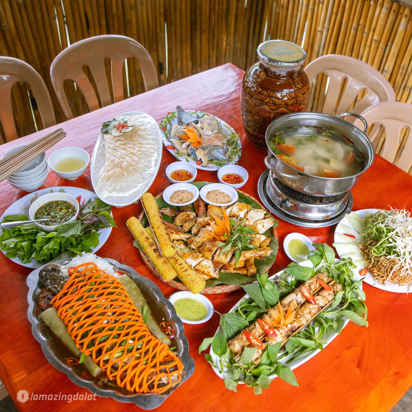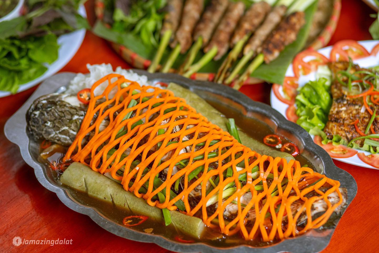 Nơi đây chỉ cách trung tâm thành phố chỉ 4km. An Sơn Hồ – một quán ăn sân vườn với chuyên các món đặc sản mang đậm hương vị Tây Nguyên như gà nướng cơm lam, cá tầm nướng muối ớt, lẩu cá tầm… món nào cũng ngon nhức cái nách luôn! An Sơn Hồ – Lai rai chuẩn không cần chỉnh cùng món ngon, ngắm cảnh cực chill bất kể ngày đêm giữa phố núi.