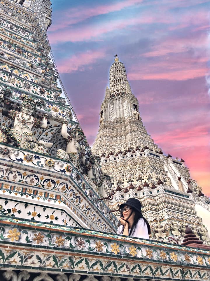 Ngày 4: Sáng đó mình đi Wat Arun, gần đó có thêm Wat Pho, Hoàng cung nhưng đến đó mình chỉ chọn đi Wat Arun vì mình thấy cũng same same nhau. Mình đi Tuktuk đến Wat Pho, nhìn vô sẽ thấy cái chợ nhỏ nhỏ ở đó có bán vé tàu đi qua Wat Arun chỉ 4bath/1 người (tàu chở mình qua sông thôi vì nó đối diện). Wat Arun quả thật siêu siêu đẹp, chụp hình sống ảo đã luôn mà giá vé 50bath (wat pho 200bath, hoàng cung 500bath). Chụp hình đã rồi thì mình ra lại bến tàu để đi Icon Siam. Icon Siam là khu mới đc mệnh danh là “Mother of all malls” rộng, đẹp lắm luôn.