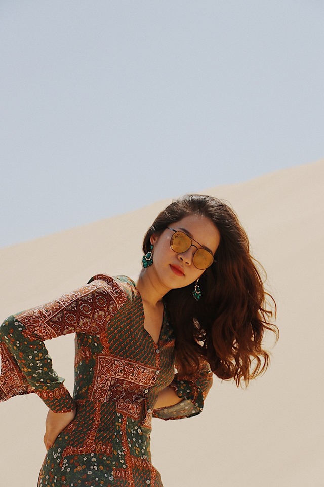 Bài học xương máuuu ở đây là mọi người nên mặc các loại váy dài, càng dài càng tốt, nắng thì mình không nói đến vì ngay lúc đi là xác định rất nắng rồi, nhưng vì gió mạnh thổi cát bay vào người rất rất rất rát, nên mọi người nên mặc đồ dài hoặc mang thêm khăn để vừa làm phụ kiện chụp ảnh luôn nhé.