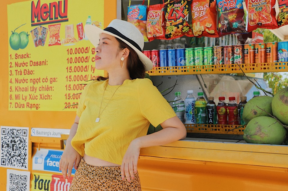 Ngồi dưới nắng vàng, gió phần phật thổi, biển vỗ rì rào, uống 1 quả dừa thì thặc sự tuyệt vời lắm, mấy anh chị bán nước trên xe rất dễ thương, hỏi chuyện chúng mình suốt, xe bán nước đúng giá, không chặt chém gì đâu, nên mọi người hãy ghé qua ủng hộ anh chị nha.
