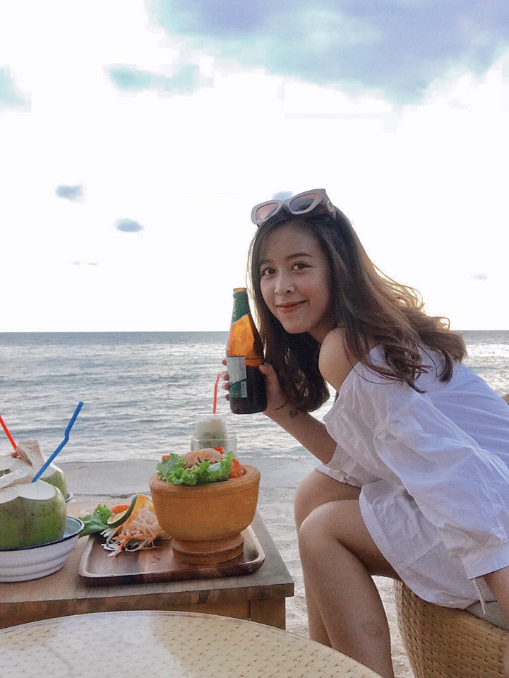 16h ra bar nhỏ Chameleon Beach Bar có các món do đầu bếp Thái chính tay làm, bọn mình gọi gỏi thái, bia , dừa… giá cả khá phải chăng và lạ miệng