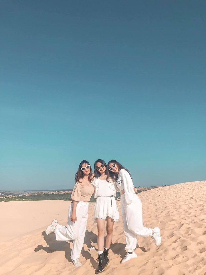 – Thời tiết ở Phan Thiết mùa này thì không còn quá gắt nữa, nhưng mọi người nhớ bôi kem chống nắng kĩ nha, lên đồi cát vẫn rát và nóng lắm ạ.
