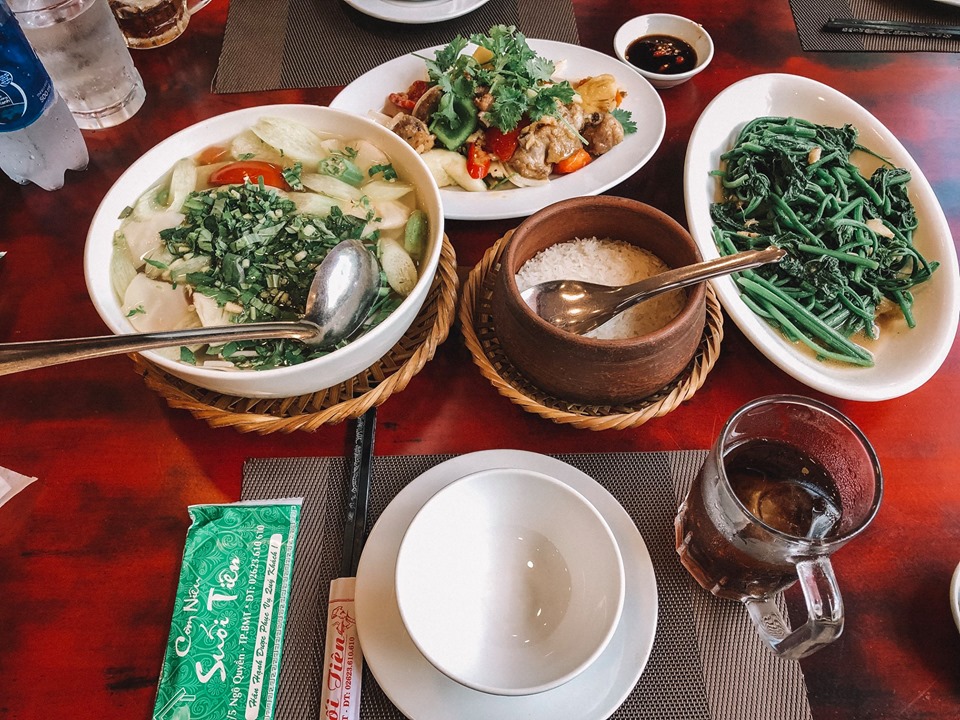 – Cơm Niêu suối tiên – 85/5 Ngô Quyền: 2 đứa ăn hết các món như hình hết 274k.
