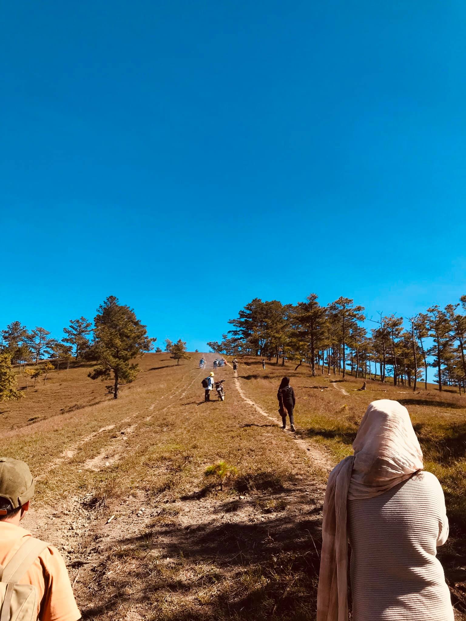 Bạn sẽ hiểu hơn về những CON DỐC ở Đà Lạt khi leo lên các quả đồi thông để đến nơi camping. Trải nghiệm này hay lắm, vừa leo mệt muốn xỉu mà đổi lại được ngắm hoàng hôn chill hết sức. Có gì đâu mà mệt, đi tiếp thoaiiii
