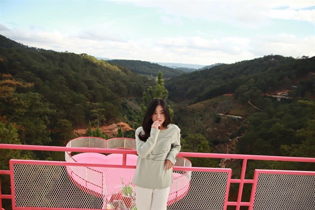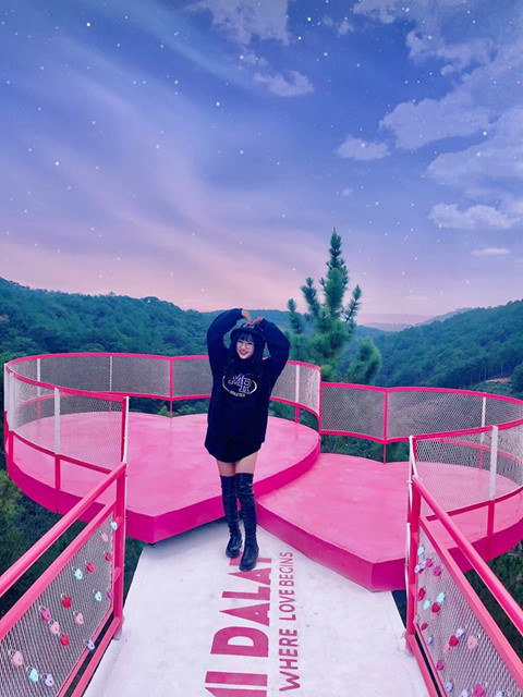 Cây cầu trái tim nằm trên ngọn đồi cao với view nhìn ra thung lũng tuyệt đẹp là điểm nhấn mới dành cho du khách khi tới Đà Lạt (Lâm Đồng). Với tạo hình trái tim độc lạ, nền hồng nổi bật trên khung cảnh rừng núi bát ngát, nơi đây được xem là điểm check-in lý tưởng cho các cặp đôi.