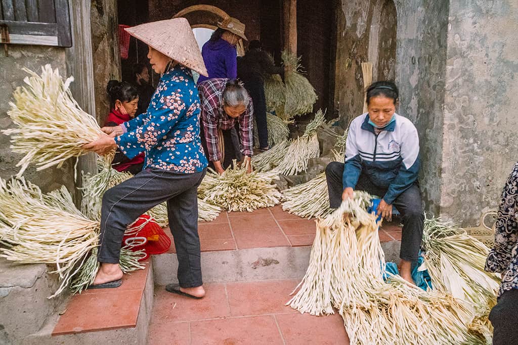 Nghề làm nón được truyền từ thế hệ này sang thế hệ khác, chủ yếu là những người phụ nữ bằng sự khéo léo của đôi bàn tay đã tạo ra những chiếc nón xinh xắn, bền đẹp. Các cô gái biết làm những chiếc nón đầu tiên từ khi bảy, tám tuổi. Người giỏi mỗi ngày thắt được hai, ba chiếc nón đẹp.