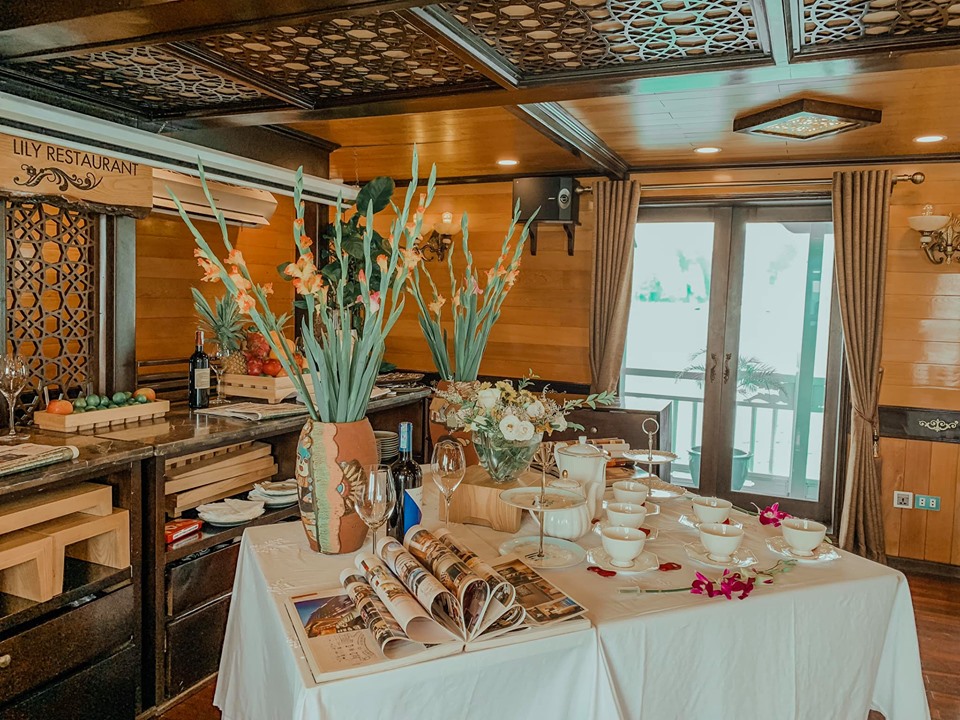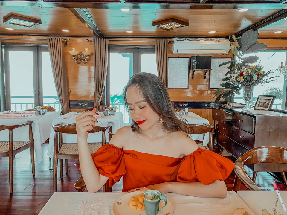 Mình đánh giá rất cao dịch vụ ở trên tàu, các bạn nhân viên đều vô cùng nhiệt tình take care khách chu đáo và tỉ mỉ. Đồ ăn mang phong cách “fusion” cũng là một điểm cộng lớn, tròn vị và thực sự rất hài hoà khi kết hợp phong vị Việt Nam truyền thống và hơi hướng ẩm thực phương tây. Lâu lâu chiều chuộng bản thân một chút, mình thật sự hài lòng với trải nghiệm lần này, cứ ngỡ Hạ Long quá quen thuộc rồi chẳng còn gì thú vị, nhưng chỉ là do chưa tận hưởng hết mà thôi.