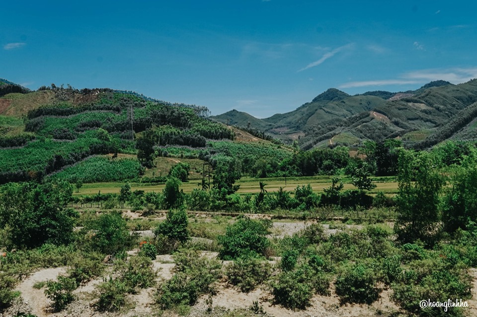 Quãng đường 400km trên con xe máy đi từ Huế đến Măng Đen tuy dài và khó khăn, nhưng tớ lại chẳng cảm thấy mệt chút nào, đặc biệt ngay khi rẽ vào quốc lộ 24, lại càng khiến tớ thêm phấn khích hơn nữa. Đó là khi con đường đèo uốn lượn bắt đầu hiện ra, rồi thì núi non tầng tầng lớp lớp nối nhau, thỉnh thoảng lại nghe được tiếng róc rách của những khe suối chảy dọc dưới chân núi nữa. Tớ lại càng may mắn hơn khi đi vào đúng mùa lúa đang sắp chín, à giờ tớ mới biết, hóa ra ở Tây Nguyên người ta cũng trồng ruộng bậc thang như ở Tây Bắc, chỉ là không rộng lớn bằng thôi. Thú thật, ngoài Tây Bắc ra thì chưa nơi nào khiến tớ có cảm giác “đã” như đường đến Măng Đen.