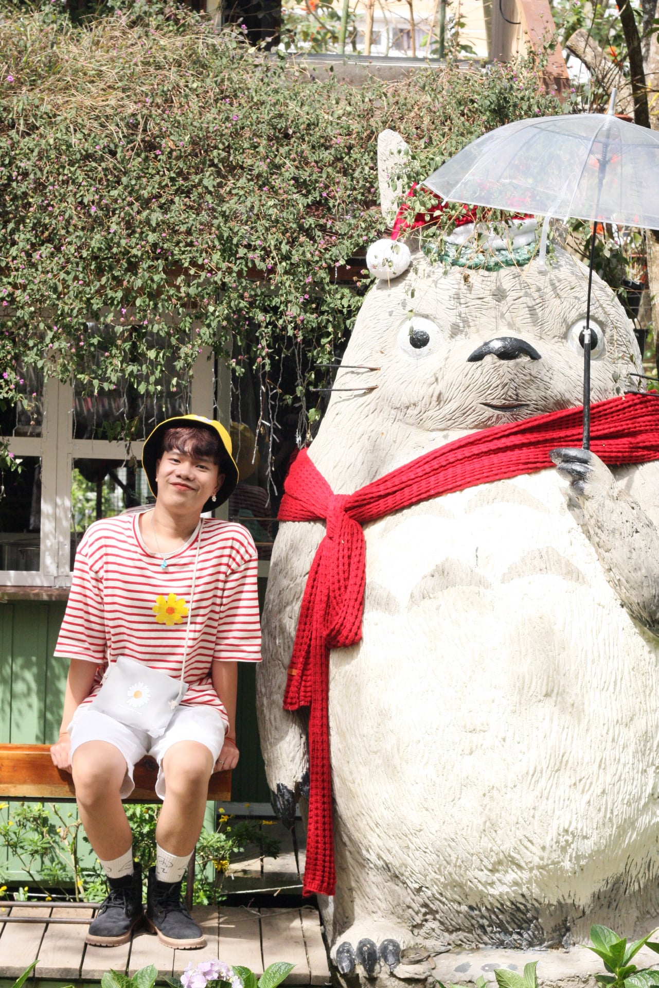 Chiều đó cả đám đi quảng trường Lâm Viên, chụp hình với bé atiso và dã quỳ xong đi loanh quanh thôi. Tòa hình atiso thì chụp được nhiều góc nên không chen chúc lắm nhưng tòa dã quỳ thì có mỗi 1 mặt chính diện, đông quá trời đông nên toàn người là người. Mọi người tới thì có thể gửi xe ở BigC á, hỏng tốn tiền, hoặc mình thấy người ta cứ dựng đó khóa cổ à, còn tụi mình thì lỡ được chú kia ngoắt vô, tưởng gửi xe nhưng lại là mua giùm chú cây dù đi chú coi xe cho, hết 80k, ủa mà nhờ vậy có cây dù sống ảo thì cũng được.
