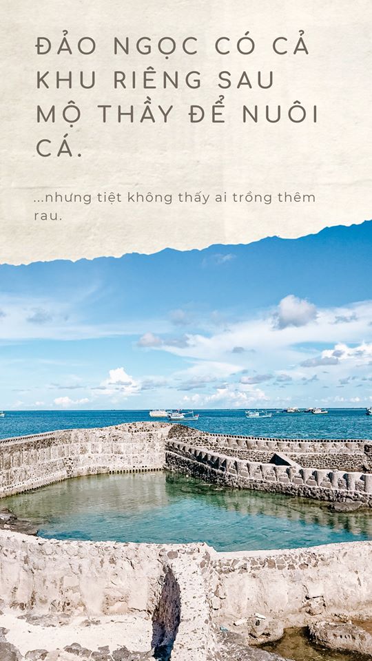 Mà nhân đây cũng tiện đôi lời khuyên các bác, nếu sắp xếp được, đừng ghé đảo 1 ngày, cố gắng ở trên đảo càng lâu càng tốt, đi 2N2Đ như tụi tui thì chỉ kịp ngủ, ăn sương sương, chơi dăm ba chỗ check in nhẹ nhàng thôi chứ chưa tìm hiểu được kĩ văn hóa đảo đích thực đâu. Như hội bạn mới quen trên đảo, họ ở đến cả tuần, buồn buồn lại vác bia lên khu Mộ Thầy để ngồi tỉ tê cùng “huyền thoại cồn” của đảo – người uống 125 lon bia/ngày không say, để nghe bác kể chuyện lịch sử hay hơn nuốt đĩa.