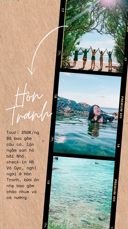 Các loại tour: Tour Hòn Tranh, Tour Hòn Đen, Tour Câu mực đêm… (Mình chọn đi tour Hòn Tranh vì cơ bản nghe bảo hòn này đẹp như tranh).