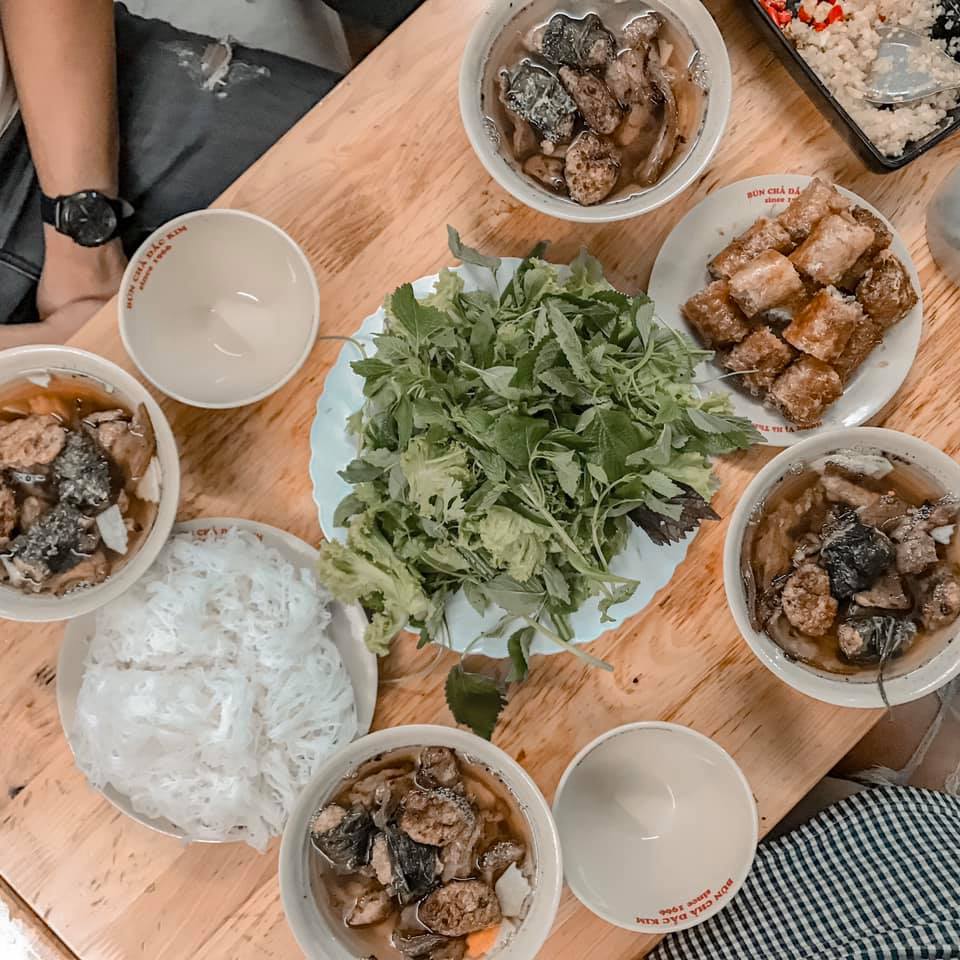 Sau đấy về nghỉ ngơi rồi chiều tối tụi mình đi ăn bún chả Hà Nội