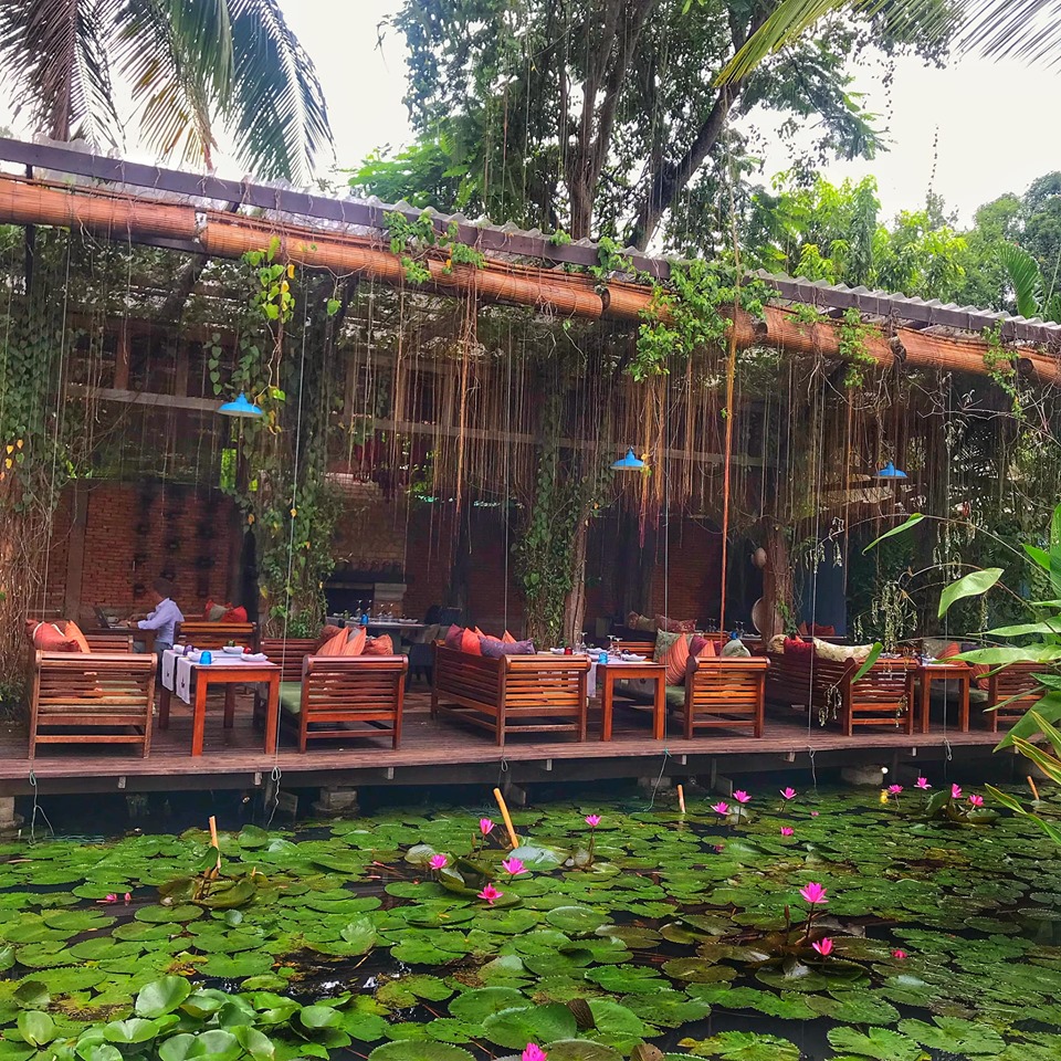 Xe trả mình ngay trung tâm thị trấn, đêm đầu tiên ở Luang mình book nghỉ ở Maison Dalabua với giá 1412k/đêm, mình book em này vì lúc mò review Laos trên instagram thấy không gian cực chill, có nhà hàng xây nổi trên hồ súng, cực nhiều cây xanh và có hàng lúa trồng quanh resort. Lúc vào tới quầy lễ tân thấy hơi nhỏ, nhưng lễ tân ở đây rất nhiệt tình và niềm nở, thấy mình tới đã ra kéo đồ hộ và mời welcome drink là nước quất kèm khăn lạnh ướp hương xả ngửi cực thoải mái. Bản thân mình thấy phòng ở đây không đẹp lắm, nhưng nền gạch và decor tông màu xanh non lá mạ nên mang lại cảm giác rất đồng quê, mát mẻ và sạch sẽ, mình book hạng Deluxe view vườn, bên ngoài có ban công nhưng lại nằm ngay tầng 1, mình không thích phòng tầng 1 vì có quá nhiều người qua lại, không riêng tư, mình có đề nghị chuyển lên tầng 2 phòng cùng hạng nhưng lễ tân báo hôm đó không còn.