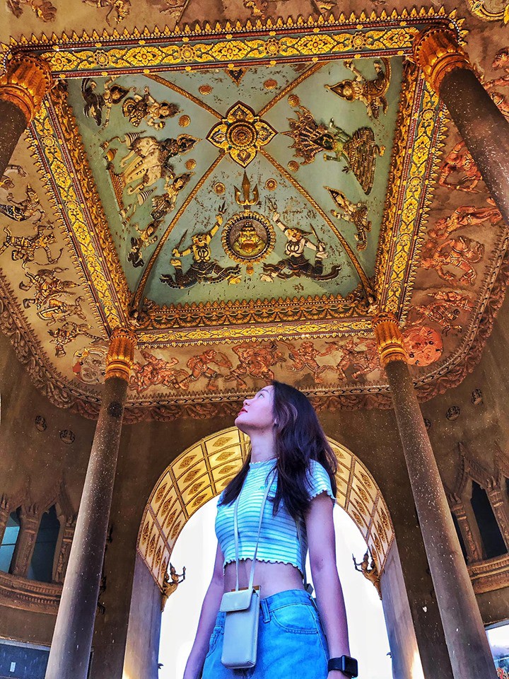 – Patuxay (tượng đài chiến thắng, ngay trung tâm thủ đô, nơi mà 10 người tới Vientiane thì cả 10 người đều sẽ chụp checkin ở đây, và mình cũng không ngoại lệ). Đây được coi là biểu tượng của thành phố này, được người dân đất nước Triệu Voi ví như khải hoàn môn của thành phố.