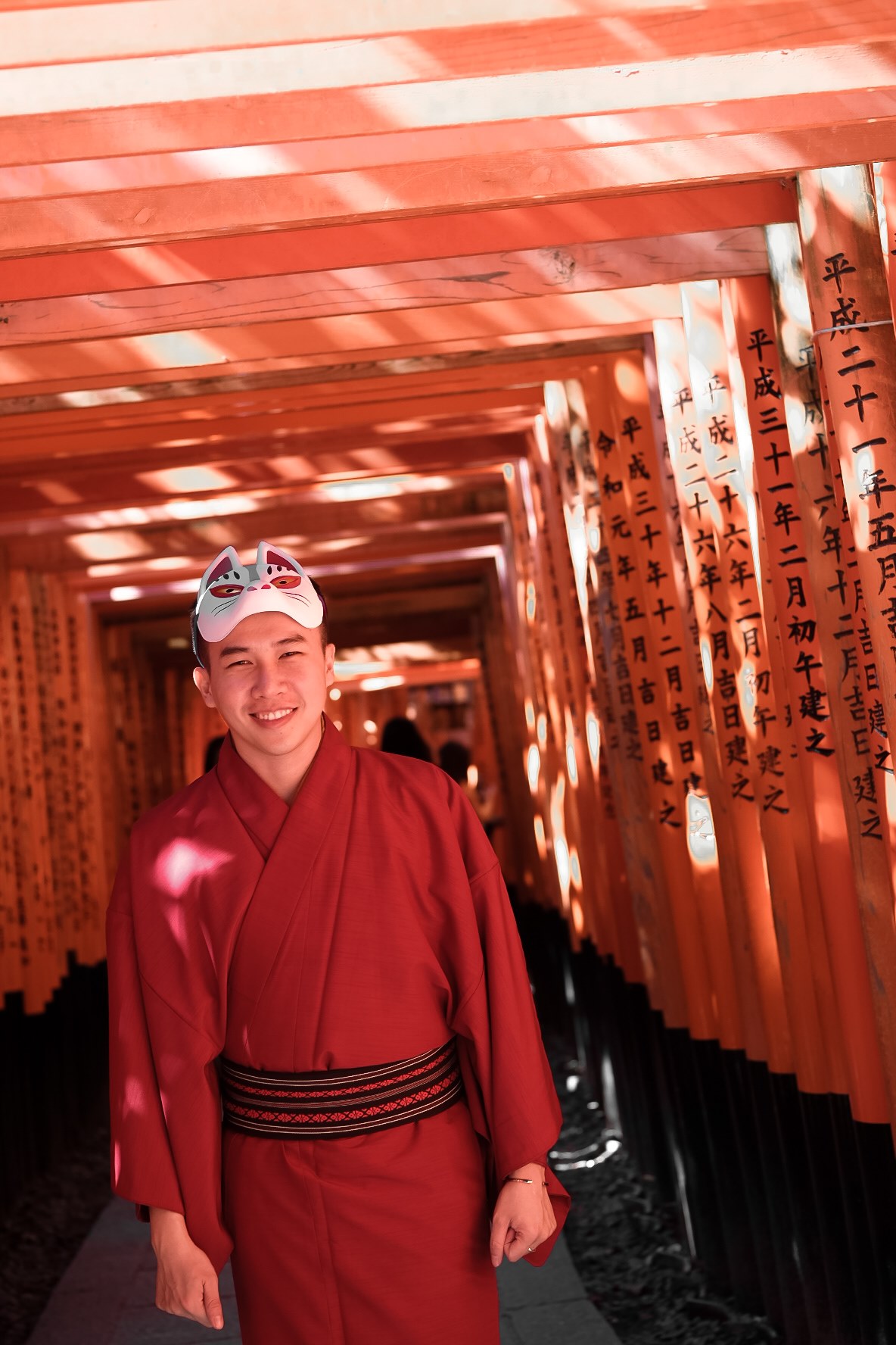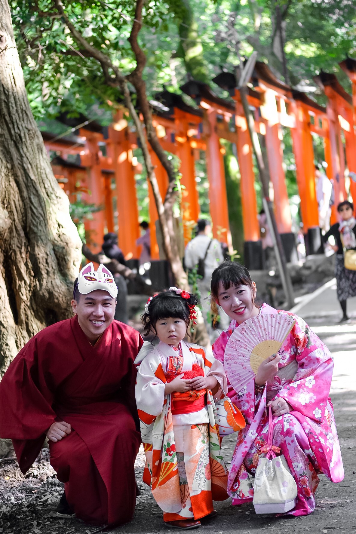 NGÀY 3: Sáng sớm đi Fushimi Inari. Mọi người nên tranh thủ đi sớm để vắng người. Mọi người sử dụng thẻ Kyoto Sightseeing (được tặng khi mua thẻ JR-West Kansai Rail Pass 2 days) để đổi lấy thẻ Keihan Railway đi tàu của hãng Keihan tại trạm Tokufuji Station. Thuê Kimono ở Nagomi gần Fushimi Inari. Phải đặt trước và 09g sáng mới có thể lấy đồ. Giá đồ nữ dao động từ 3.000 yên đến 10.000 yên, nam thì tầm 4.000 đến 5.000 yên. Phải trả đồ thuê trước 06:00PM. Mọi người cũng có thể thuê kimono ở khu Kyoto Station nhưng nhớ là phải đặt trước.