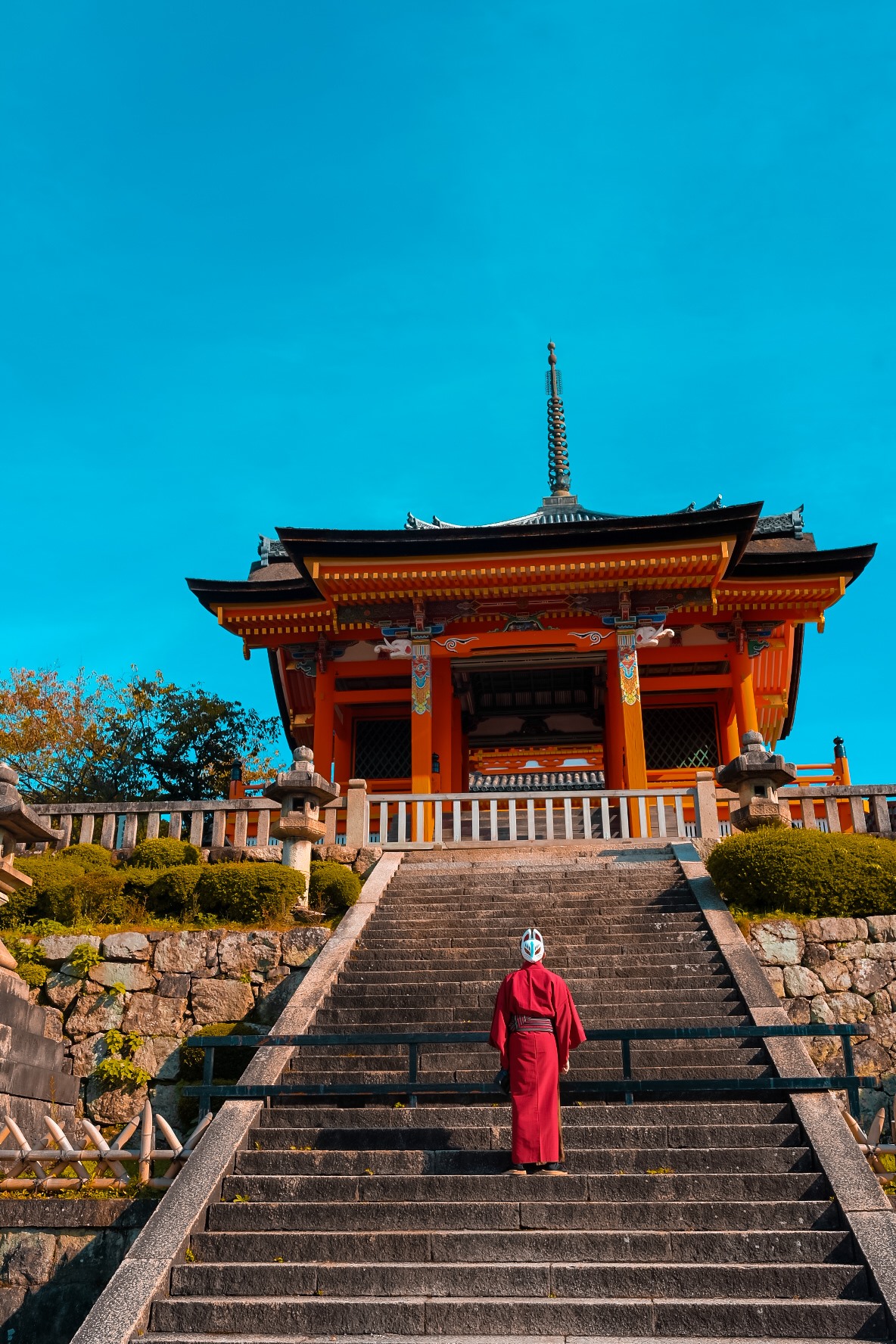Sau khi chụp chán chê ở Fushimi rồi thì đi qua Chùa Thanh Thủy (Miyomizudera) và Chùa Yasaka chụp hình tiếp. Ở Yasaka có một góc chụp ảnh siêu đẹp mà thấy mọi người ai đến đây cũng đều ghé qua đó. Tuy nhiên lúc mình đi thi rất là đông rồi. Tham quan xong 2 điểm này thì mình đi tàu về Fushimi để trả đồ thuê. Rồi bắt xe tối đi dạo Gion. Mọi người lưu ý là từ 25/10 thì quận Gion cấm không cho du khách chụp hình, sẽ phạt nặng khoảng 10.000 yên. Tuy nhiên lúc đi dạo mình thấy vẫn có mấy khách du lịch chụp hình nhưng thôi cứ tuân thủ quy định cho chắc. Nếu may mắn thì bạn sẽ bắt gặp các cô geisha tại phố Gion này. Mình thì đi mỏi chân quá rồi lượn tới lui cũng 2 vòng nhưng không thấy. Chắc do còn sớm quá. Sau đó tiếp tục đi dạo chợ đêm Nishiri market. Tiếp tục ăn sushi tuy nhiên không bằng ở Musashi.