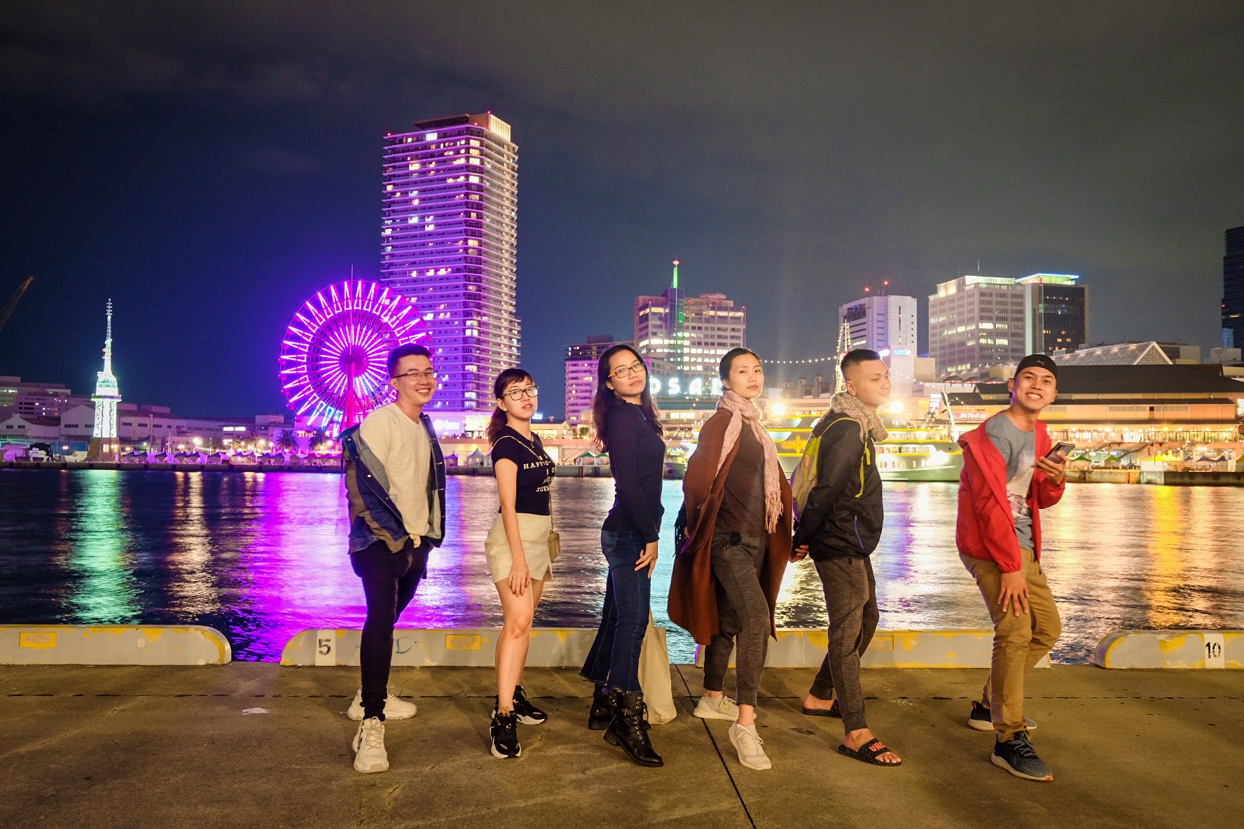 Ăn trưa xong thì đi thủy cung chơi. Giá vé 2.200 yên. Thủy cung ở đây rất đẹp và đa dạng các chủng loài. Ngoài ra còn được tận tay sờ cá mập, cá đuối nữa. Đi hết chỗ này chắc cũng khoảng 1 tiếng. Xong cả đám sử dụng vé Osaka Amazing Pass để được đi vòng quay miễn phí (vòng quay cũng giống giống kiểu Sunwheel ở Đà Nẵng), ngắm toàn bộ khung cảnh thành phố Osaka về đêm. Có 2 loại buồng cho bạn chọn là buồng đáy kính (có thể nhìn cảnh xuyên dưới chân) và buồng đáy sắt. Tuy nhiên khu vực buồng đáy kính thì xếp hàng hơi lâu xíu.
