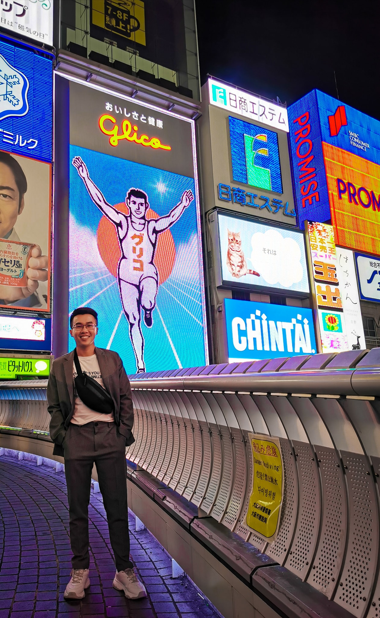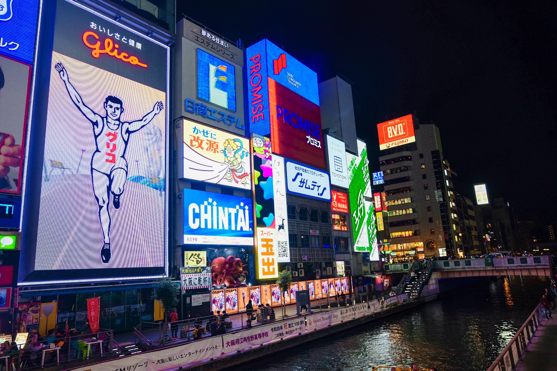 Dạo một vòng thuyền rồi thì tiếp tục đi dạo phố đêm ở Dontobori. Dontobori đẹp nhất là về đêm với hằng hà các bảng đèn quảng cáo to nhỏ rất bắt mắt, dòng người thì đông đúc nhộn nhịp. À Mọi người nhớ chụp ảnh check in với cái bảng đèn anh chàng vận động viên – hiện tại có thể xem như biểu tượng ở Osaka. Bảng hiệu này chỉ mở đèn tầm lúc 6g tối, với 14 triệu đèn led…, chạy 15 phút thì quảng cáo.