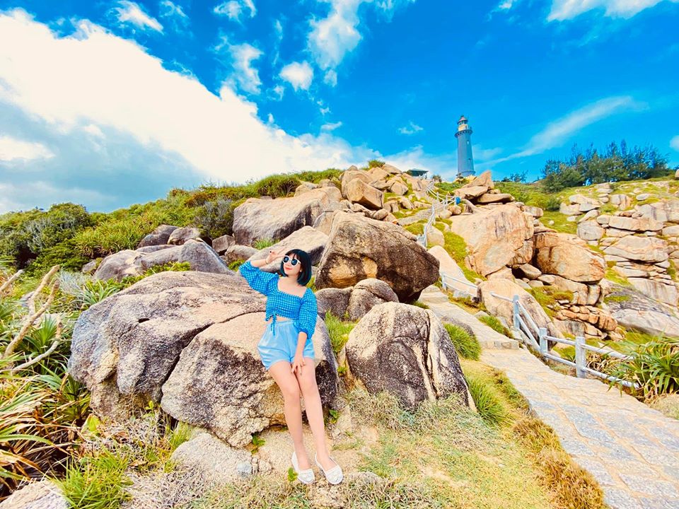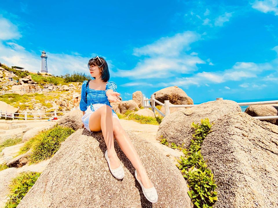 Sau đó mình di chuyển ra Gành đèn (ngọn hải đăng) ở đây có thể ngắm view biển với đá đồ sộ, hùng vĩ.