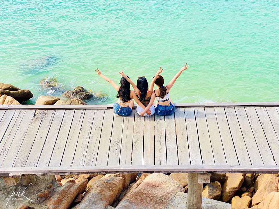 15h00: sau khi chụp ảnh thoả thích thì tụi mình thay đồ ra biển bơi lội thôi ạ. Biển sạch nên tắm rất thích nha mọi người.