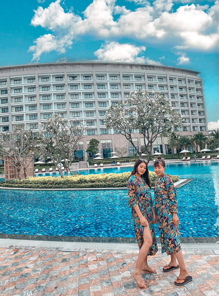 Sáng 6h30 bọn mình xuống ăn sáng (đồ ăn sáng ở đây không chê vào đâu được, có rất rất nhiều món cho mọi người lựa chọn nhé), sau đó bọn lên thay đồ xuống bể bơi sống ảo.