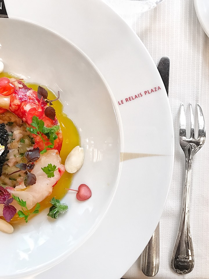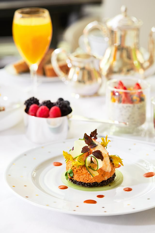 Đầu bếp của khách sạn là 1 trong 3 đầu bếp nổi tiếng nhất ở Pháp. Bữa sáng sẽ được phục vụ theo món, không có buffet như những khách sạn bình thường khác. Các món ăn đều xuất sắc đẹp và được phục vụ không không gian sanh cảnh hết nấc.