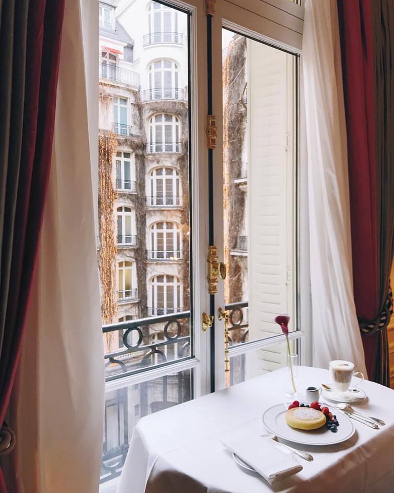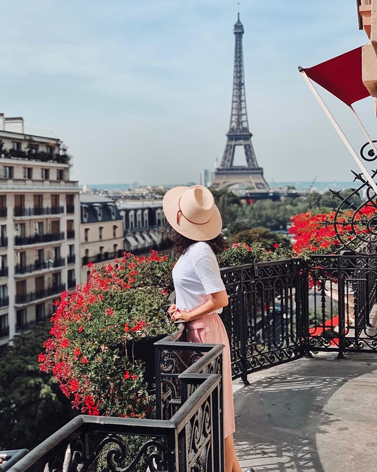 Điểm nhấn nổi bật nhất của hotel Plaza Athenee Paris chính là ban công. Ban công đầy hoa quanh năm, có view nhìn thẳng tháp Eiffel – biểu tượng của nước Pháp. Chắc chắn là bạn sẽ có những khung ảnh đáng khoe ở đây rồi nè!