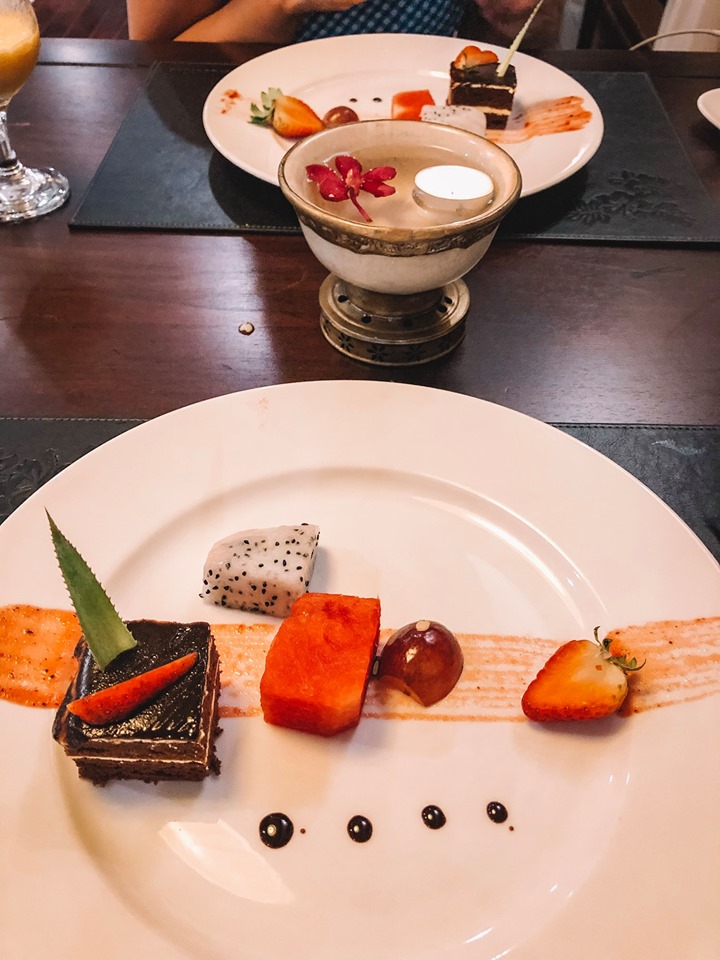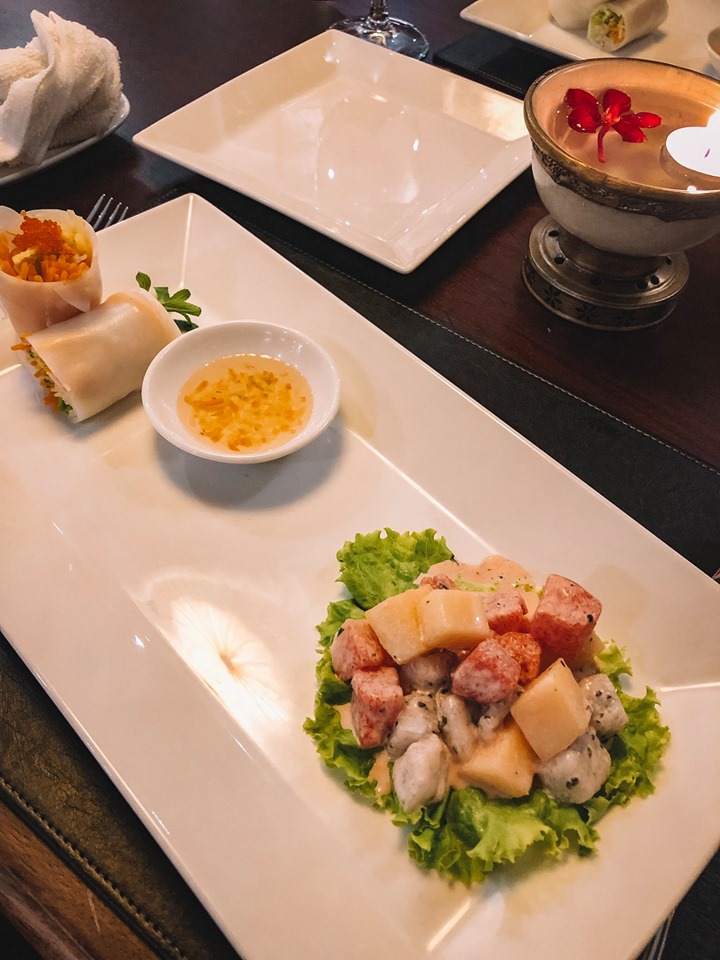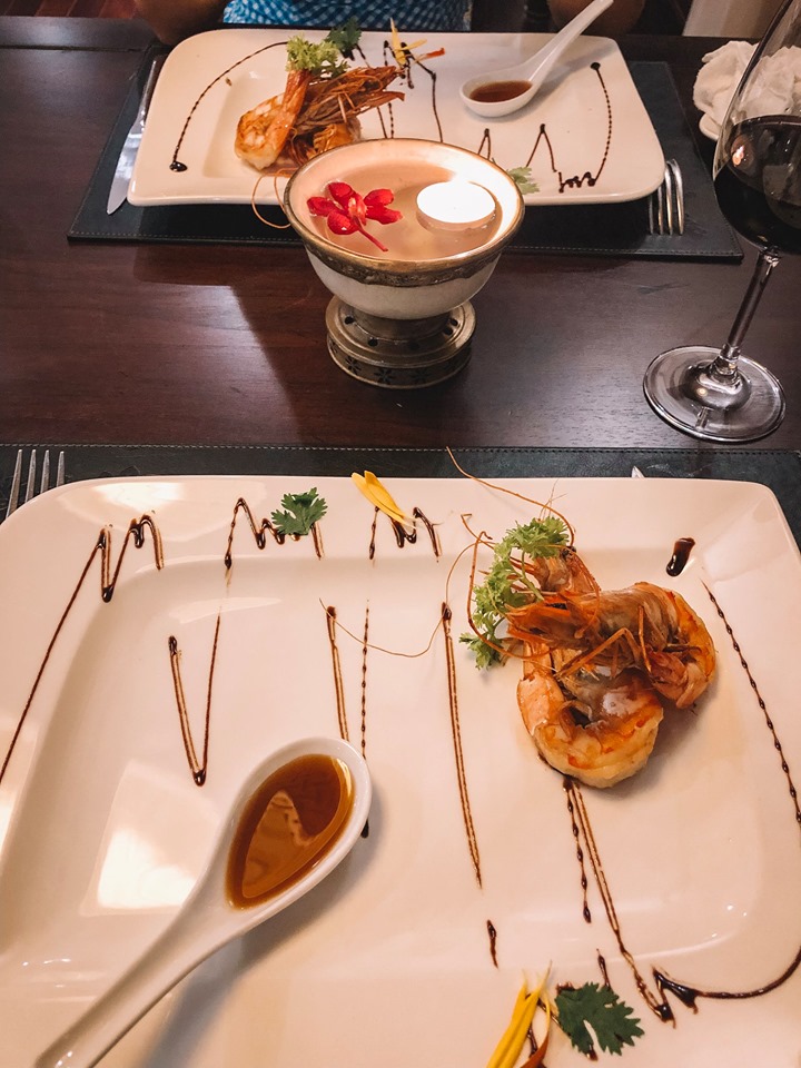 – Bữa tối ngày đầu: Ăn tối theo kiểu alacarte – set menu. Họ sẽ bưng ra từng món một, khi cả bàn ăn hết món đó thì mới mang tiếp ra món tiếp theo.