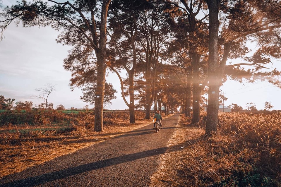 Con đường Hàn Quốc: Trên đường vào Biển Hồ Chè sẽ thấy hàng thông lá kim huyền thoại mà người dân Gia Lai gọi là “con đường Hàn Quốc”. Đây là một trong những địa điểm check in đẹp siêu đẹp ở Pleiku. Mình chọn đến đây vào buổi chiều. Lúc này sẽ có nắng vàng của hoàng hôn đang ngả xuống, xuyên qua các tán cây, kết hợp với con đường đỏ. Đẹp tuyệt vời luôn ý. Luôn luôn có những bức ảnh tự nhiên hết sức, màu ảnh lên cũng rất đẹp. Ahuhu