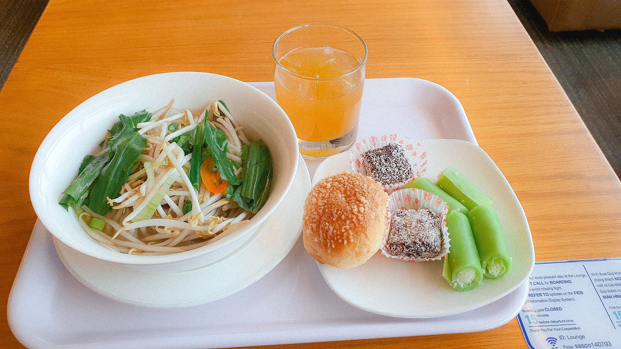 5h sáng, di chuyển ra Sân bay Tân Sơn Nhất check in và vào phòng chờ thương gia ăn đủ thứ (Ưu đãi dành cho ai sở hữu Samsung Galaxy mới nhất như S10,10+, Note 10, 10+. Mọi người mua Samsung dùng đi (tiện PR cho SS), vé phòng chờ quốc tế mua ngoài tận 600 hay 700k/ người gì đó đó) – 8h10 bắt đầu bay, từ HCM đi thì bay tầm 4 tiếng rưỡi, chuyến bay khá dài nên là mỏi lắm.