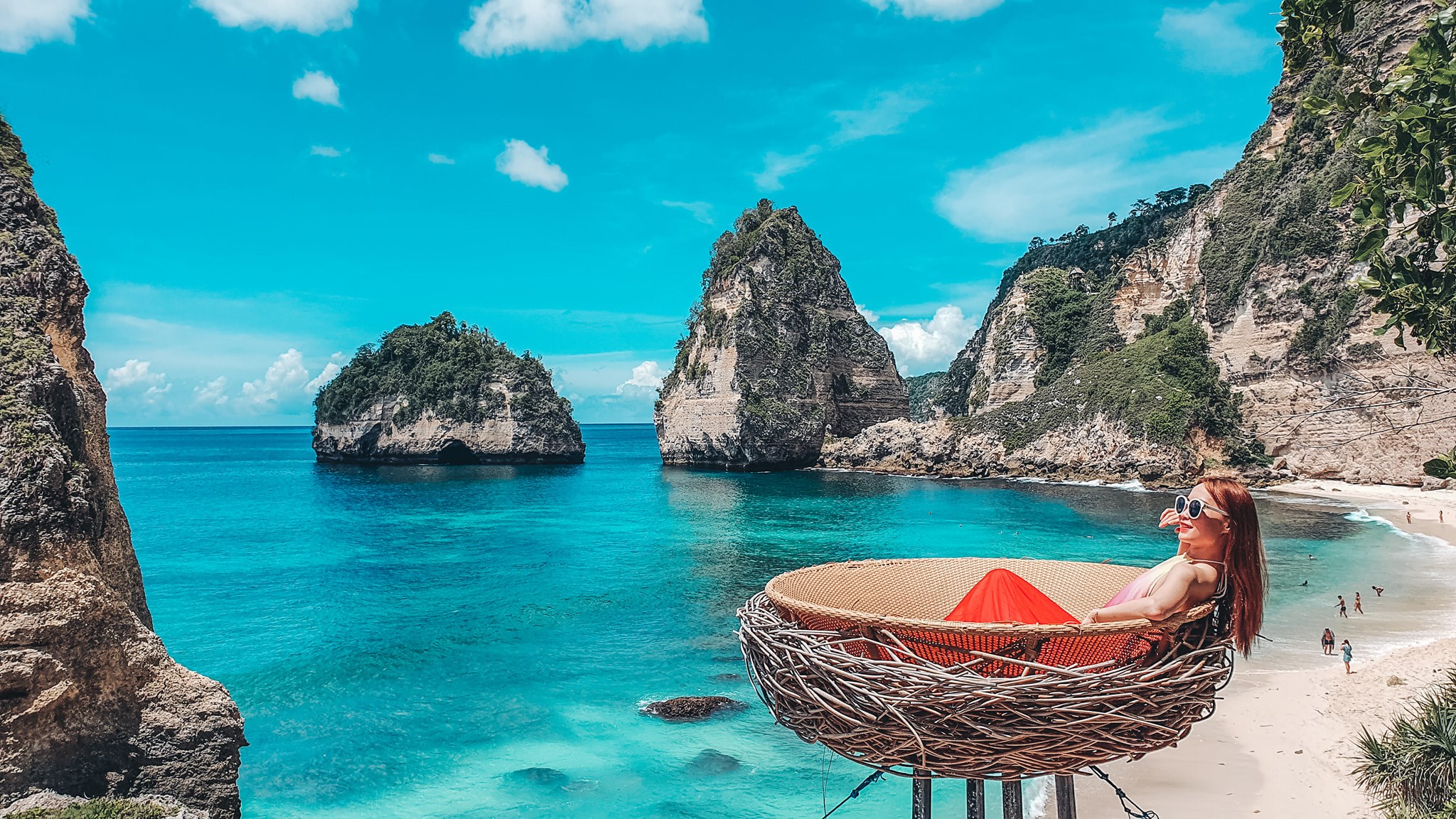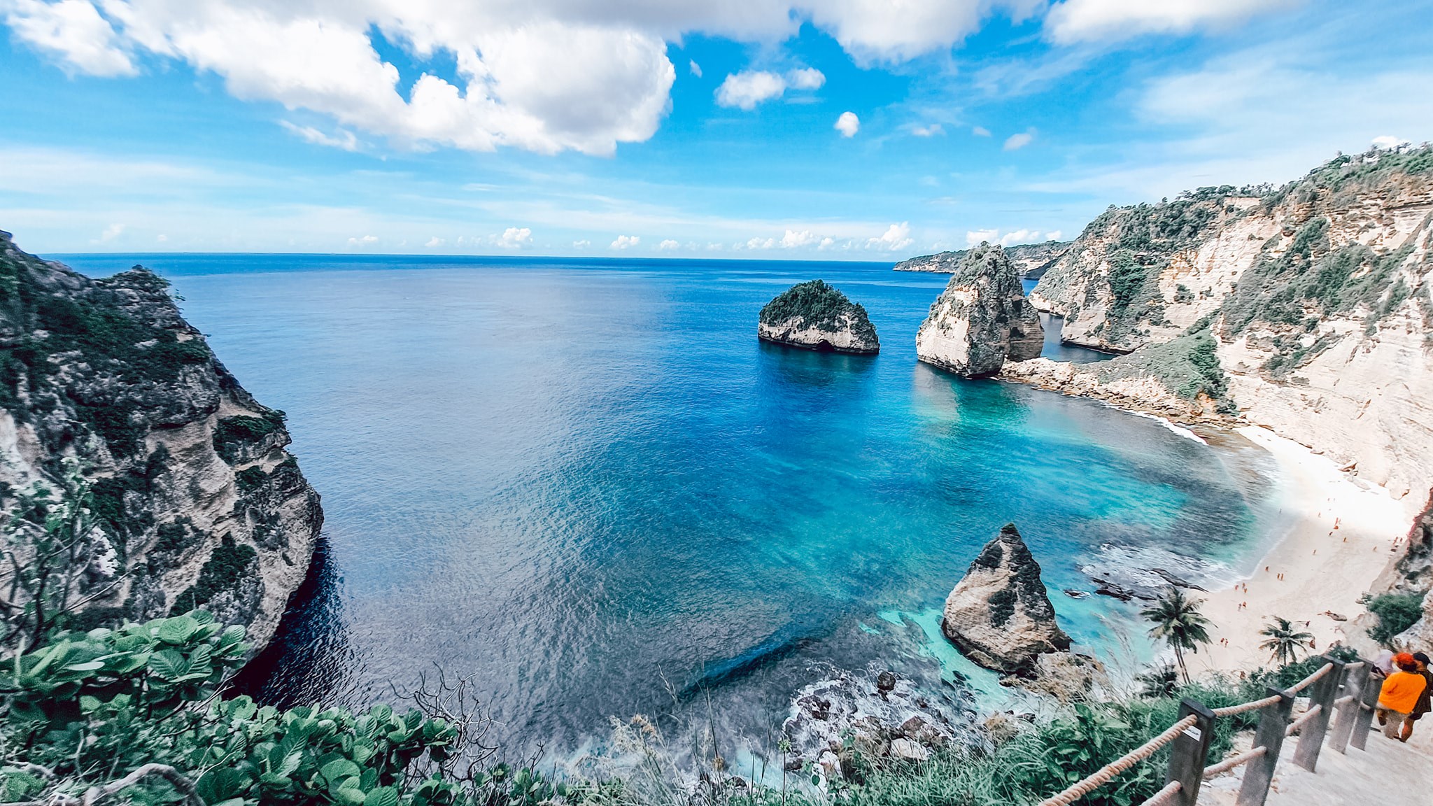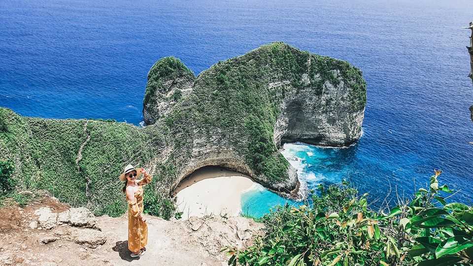 + Kelingking Beach (bãi biển T-Rex): Nằm ở Tây Nam đảo, là biểu tượng của Bali, có mỏm núi đá vôi như con khủng long nhô ra ngoài biển. Đa số đứng trên cao chụp ảnh, vì đường xuống nhiều bậc thang gồ ghề, dốc khó đi, dễ trơn trươt nguy hiểm. Ai có thể lực tốt, cẩn thận, đam mê thì mới nên leo xuống biển nhé.