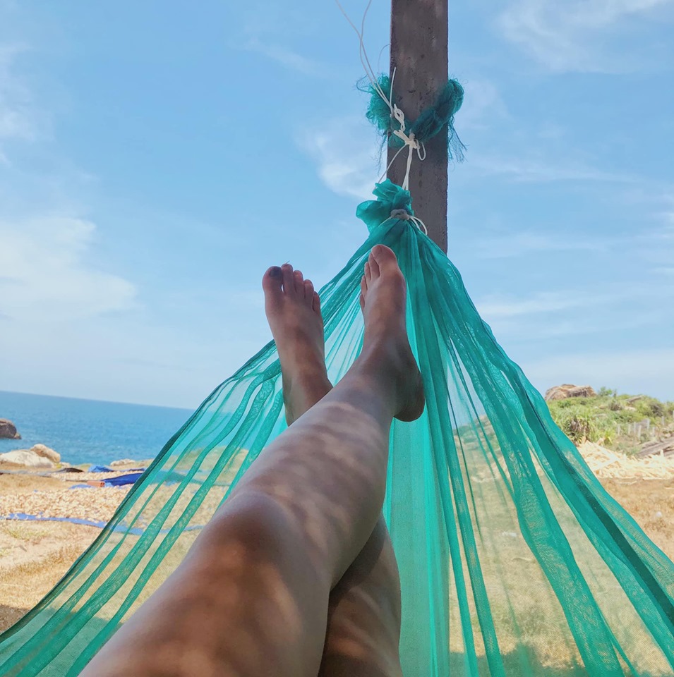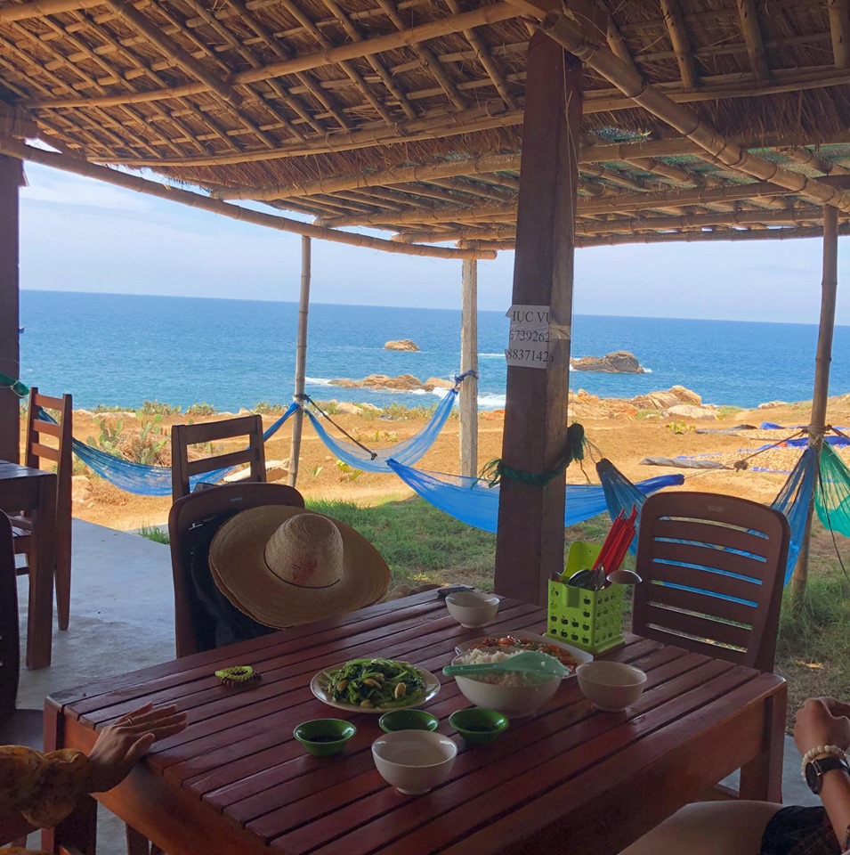 Ghềnh đá đĩa nước trong khủng khiếp, trưa tham quan xong bọn em ăn ngay tại nhà hàng nhìn ra biển, có võng nghỉ trưa luôn, rất chill.