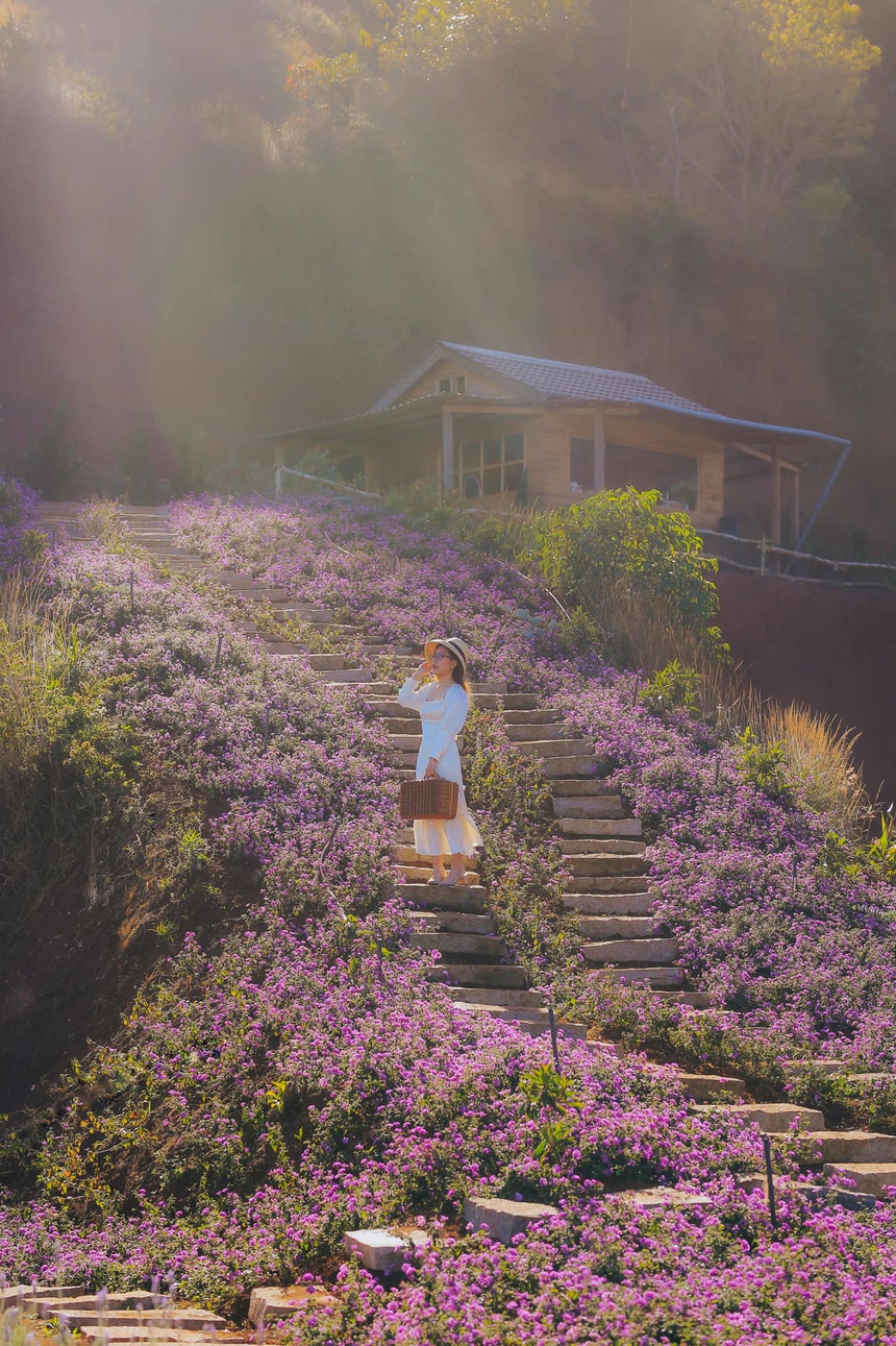 Thời gian bắt ảnh đẹp là từ 7h30-9h30 và 15-17h. Khu vực này đón khách từ 7h30 và đóng cửa lúc 17h nên các bạn lưu ý thời gian check-in. Giá vé vào cửa là 60.000 đồng/người bao gồm đồ uống và túi thơm tặng kèm được làm từ hoa tại vườn. Địa chỉ: Vạn Thành, phường 5, Đà Lạt. Ảnh: Đồng Ngô.