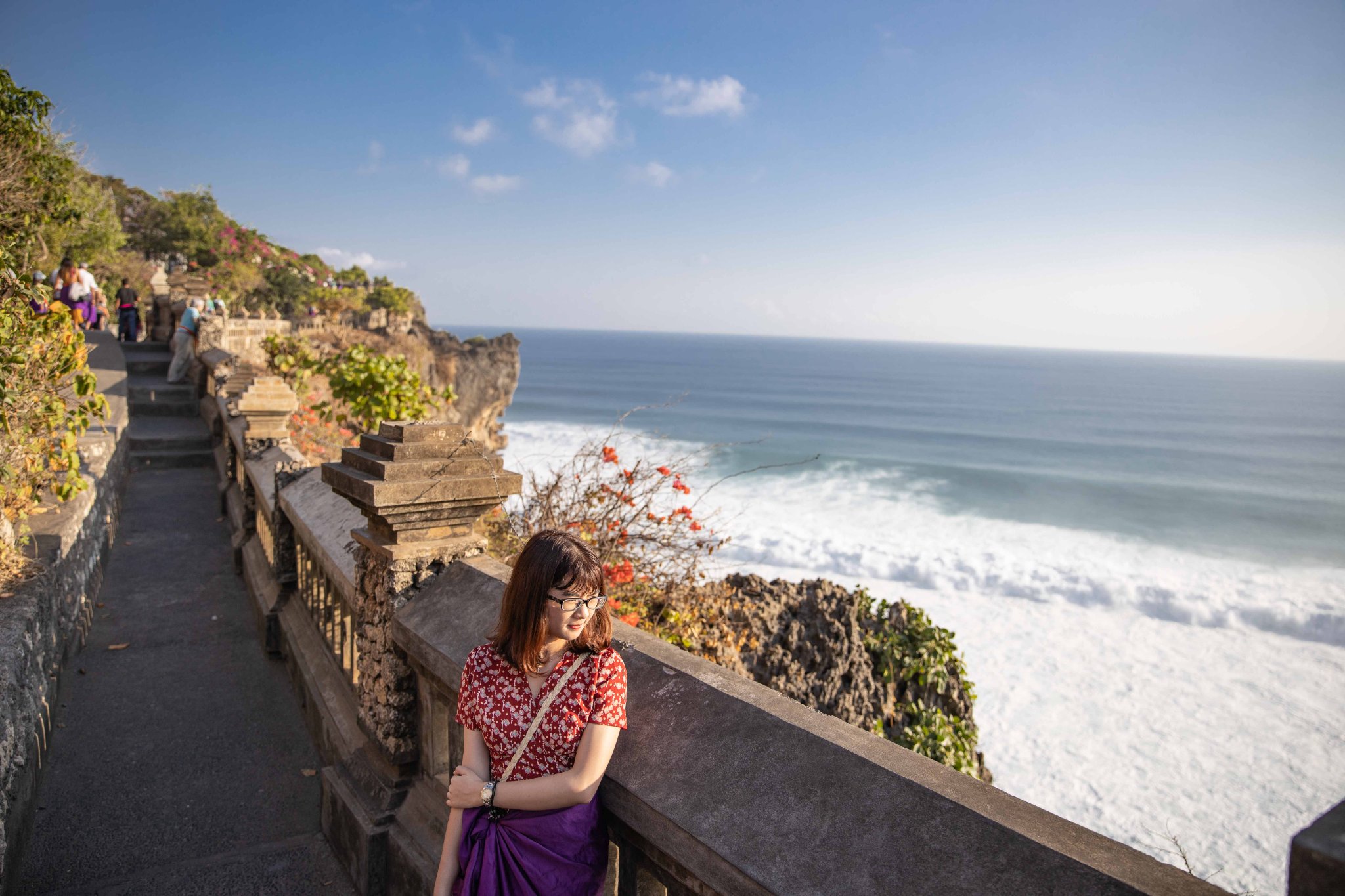 Uluwatu temple: ngôi đền trên vách núi cao dựng đứng sát bờ biển Ấn Độ Dương, là nơi ngắm hoàng hôn vô cùng lí tưởng. Đền này nhiều khỉ vô cùng luôn, lũ khỉ thì béo mập vì được cho ăn nhiều và… cướp đồ ăn của du khách cũng nhiều. Hãy cẩn thận giấu đi kính, điện thoại,… và những vật bắt sáng lóng lánh khác vì lũ khỉ rất khoái mấy món này, chúng sẵn sàng tấn công/cướp giật từ tay bạn chỉ trong chớp mắt.