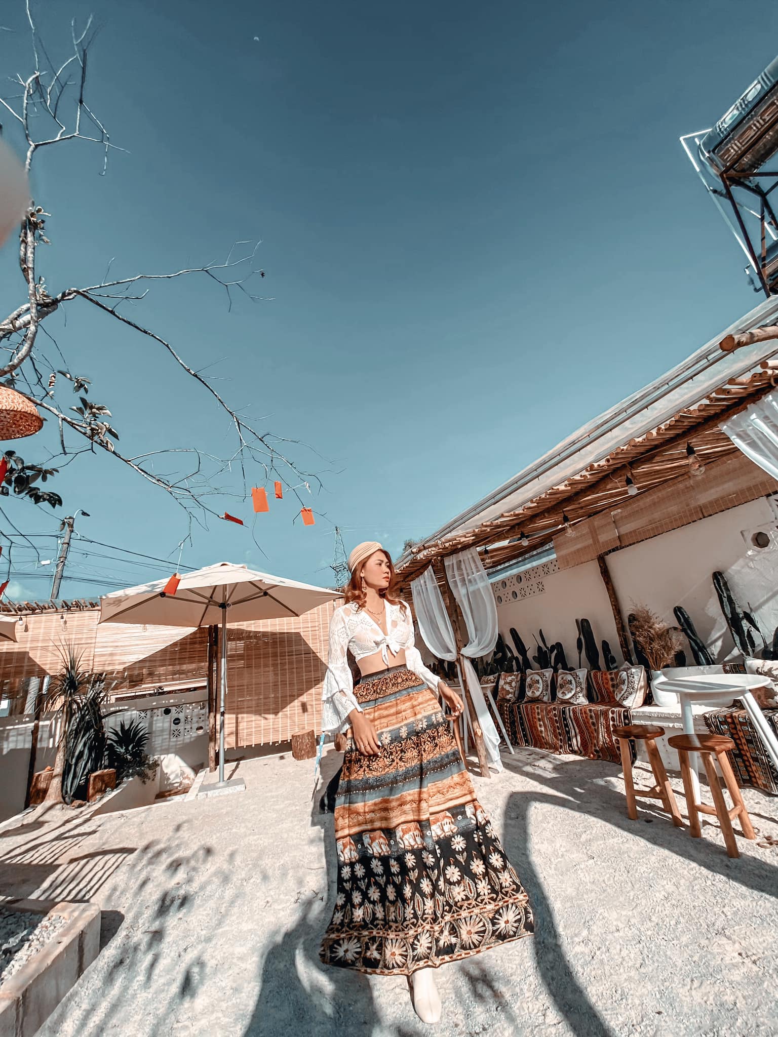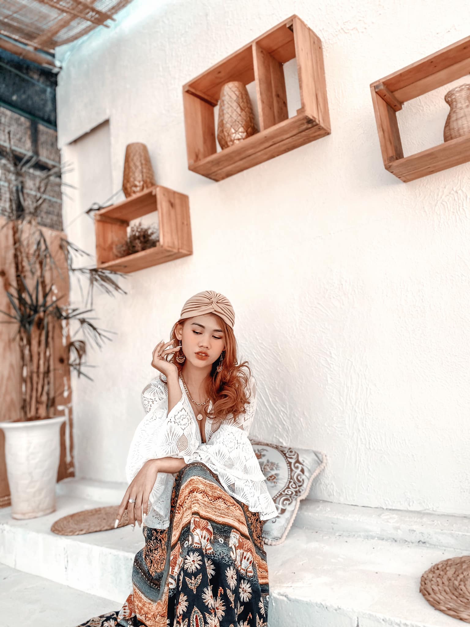 Điểm mình thích nhất ở quán đó chính là những họa tiết thổ cẩm nó phù hợp với phong cách boho mà mình chuẩn bị.