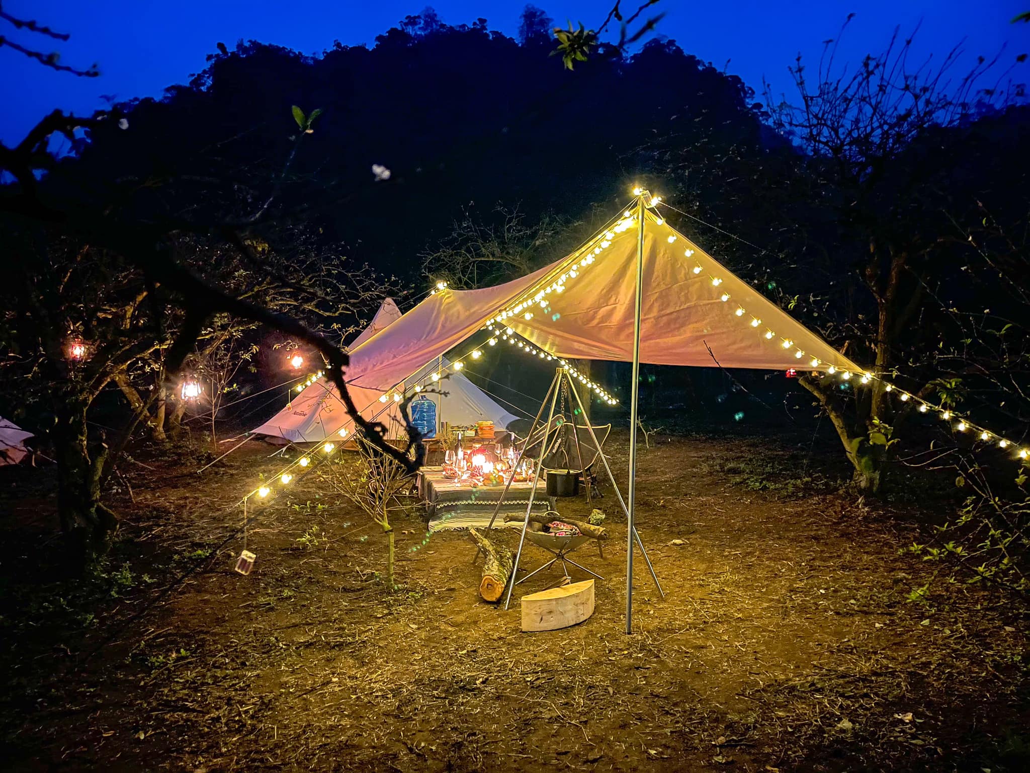 Đêm đầu tiên mình cắm trại ở The Camp Mộc Châu (giá 1.490.000/1 pax full service từ lều trại, ăn uống ngủ nghỉ cho 1 ngày 1 đêm)