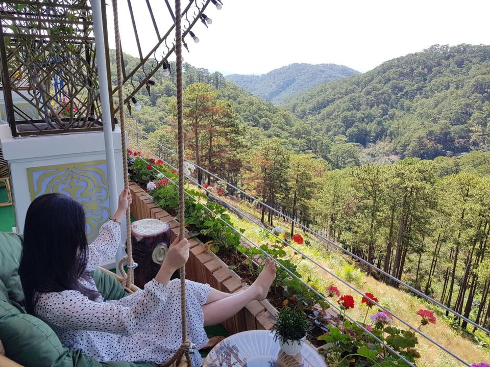 Với vị trí trên cao lơ lửng, từ quán các bạn có thể phóng tầm nhìn ngắm trọn đồi thông với mây bay lãng đãng vào mỗi buổi sáng, rất thi vị và lãng mạn. Đặc biệt phù hợp cho những cặp đôi, ngồi bên nhau nhấm nháp chút cafe sáng và nói những câu chuyện tình yêu nha.