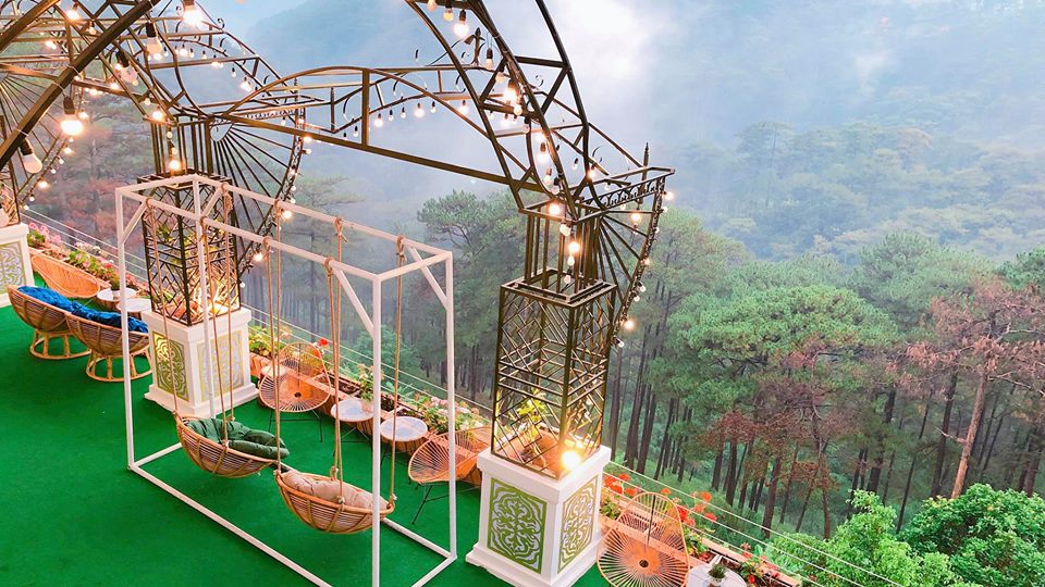 Tọa lạc trên một ngồi đồi cao, điểm đặc biệt nơi đây chính là không gian xen lẫn với view núi rừng bao la tuyệt đẹp, ngồi ở đây bạn có thể vươn tầm mắt xa tận chân trời, ngắm trọn ngàn thông, sương mù giăng lối cứ như được lơ lửng giữa các tầng mây, nhất là vào mỗi buổi sớm mai.