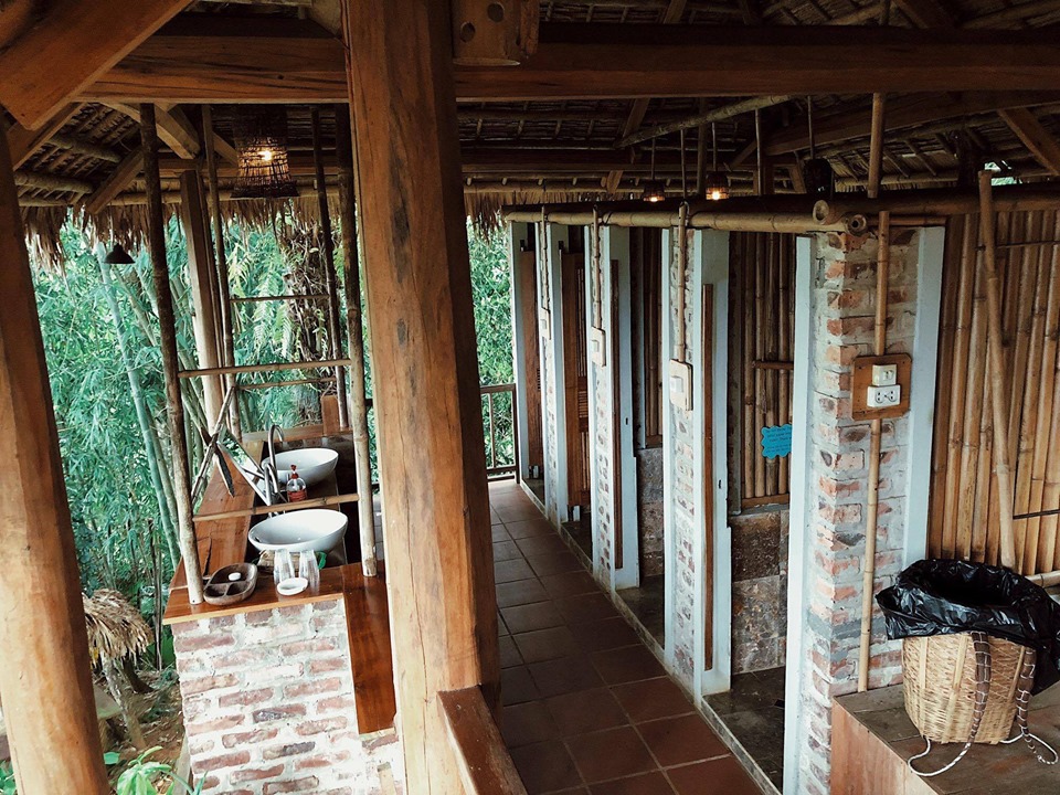 Cảm nhận đầu tiên là đúng với tiêu chí về với thiên nhiên, ở đây tiết kiệm điện, trong phòng không sử dụng tivi, điều hoà, tủ lạnh, đèn hơi mờ mờ, mọi thứ đều làm bằng gỗ, tre, nứa, dây thừng, cọ… đảm bảo tiêu chí môi trường, tránh sử dụng túi nilon. Các em nhân viên thì hoà nhã, ngoan và rất hiền, cực kì thân thiện.