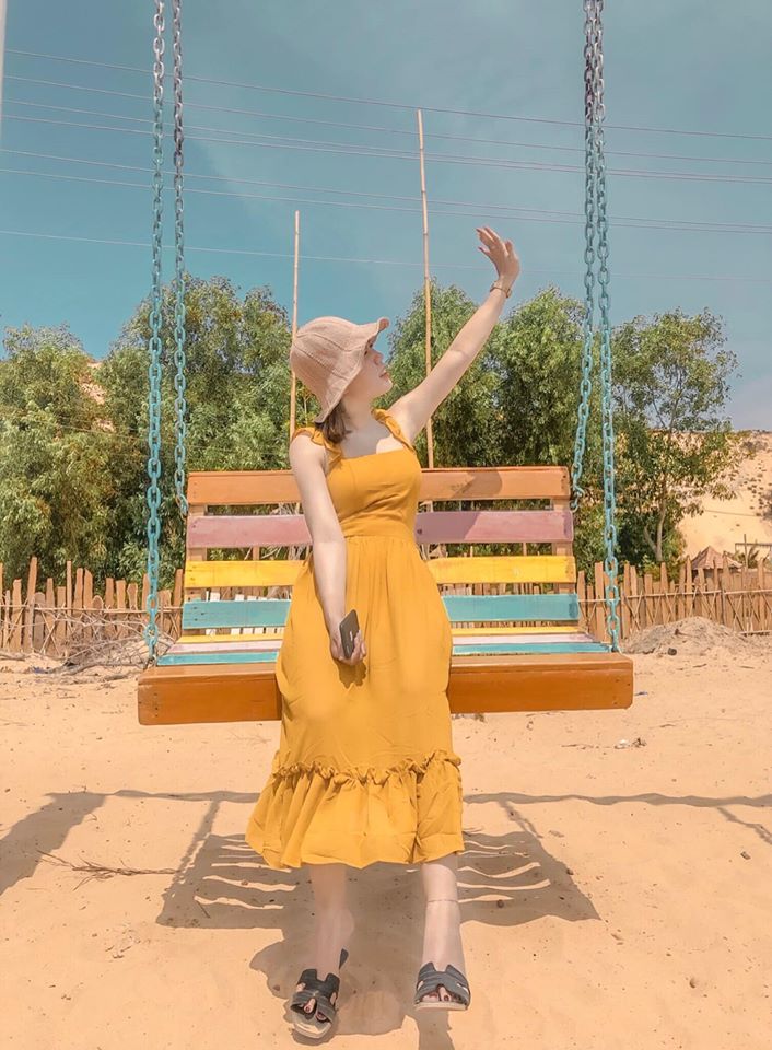 Đi vài vòng cho bớt no, tụi em tiếp tục phi trâu tới hòn Rơm (cách tp Phan Thiết khoảng 20km). Đường đến đây hai bên là đồi cát, gió to nhưng mà cực kì đẹp. Nhận phòng tại Homestay Hòn Rơm Bay đã đặt trước (phòng 300k/đêm) phòng mới xây, cực kì xinh xắn, nằm trên đường Xuân Thuỷ của hòn Rơm nhé (được cái rất gần các địa điểm check in sống ảo). Thêm anh chủ siêu thân thiện, không biết đường đi đâu là ảnh vác trâu ra dẫn đến tận cổng chỗ đó. Nghỉ ngơi, ăn uống, thay đồ và bắt đầu công cuộc sống ảo.