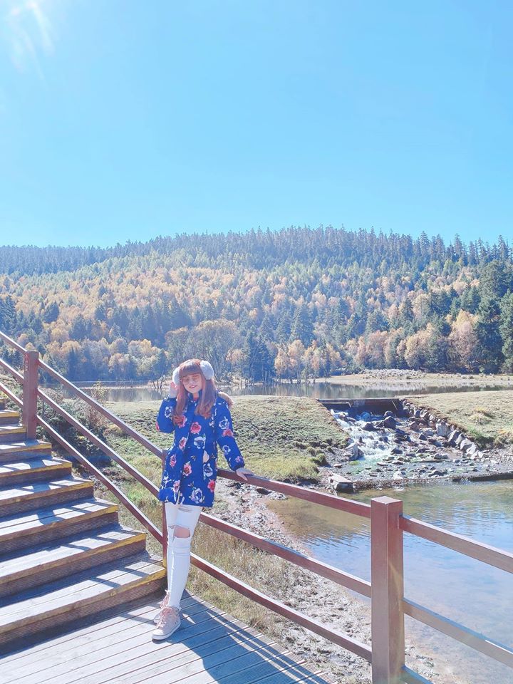 Rừng quốc gia Phổ Đạt Thố: đi vào công viên cũng khá xe nhưng có xe trung chuyển chở mình vào khu thảo nguyên xanh mát. Đi bộ ngắm cảnh, mình đi còn lá vàng rất nhiều nên cảnh mùa thu ở thảo nguyên cực kì lung linh. Tour mình có đi tàu trên hồ để đỡ phải đi bộ xa khoảng 50 tệ/ 1 người.
