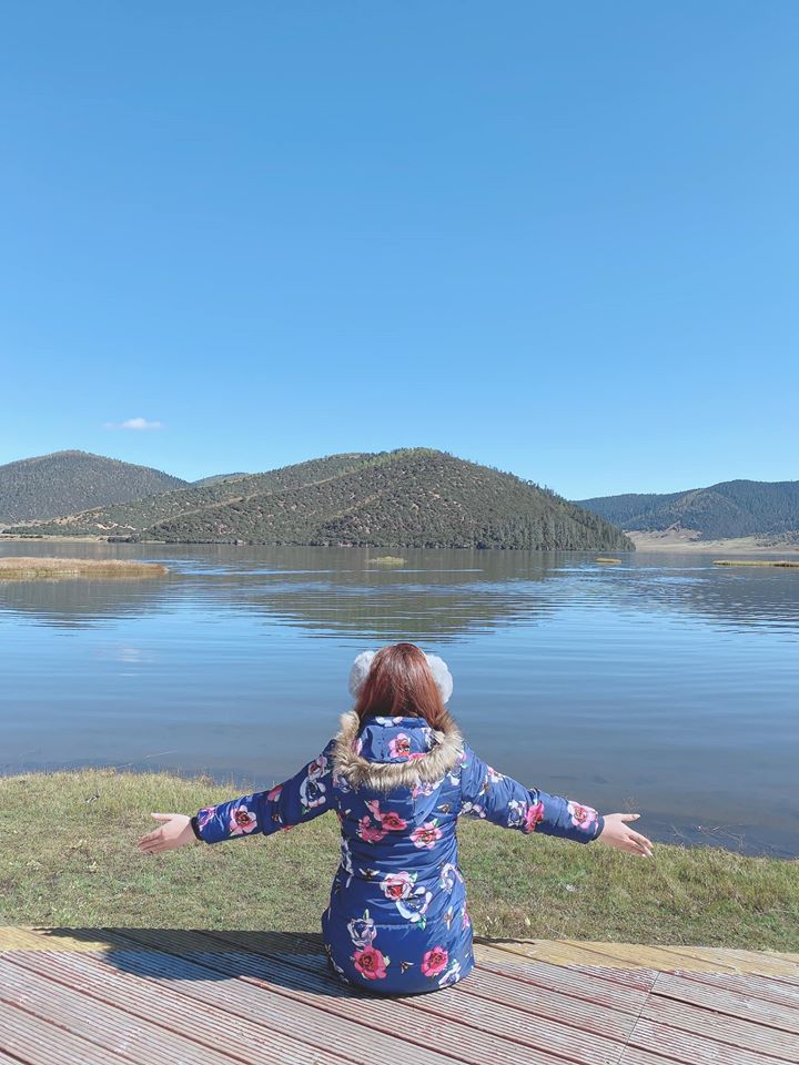 Lam Nguyệt Cốc: đoàn mình có luôn xe chở đoàn mình xuống hồ, chỉ đi bộ chút ít. Nước hồ có một màu xanh ngọc cực kì là đẹp như trong các bức tranh luôn. Mình có thuê đồ dân tộc mặc và chụp hình cùng chú bò Yak nổi tiếng. Giá thuê đồ là 25 tệ, chụp cùng chú bò Yak là 50 tệ/ 1 người lên ngồi.
