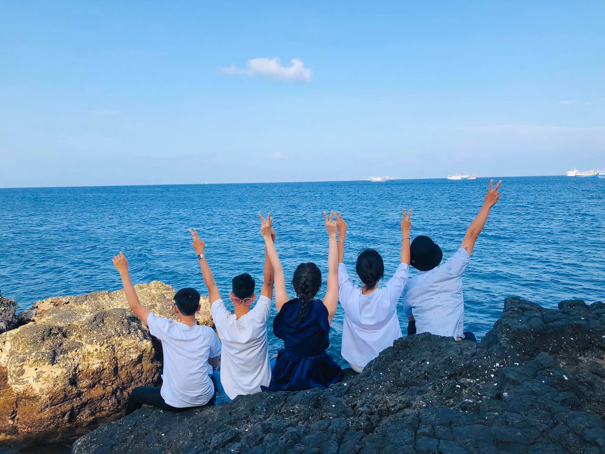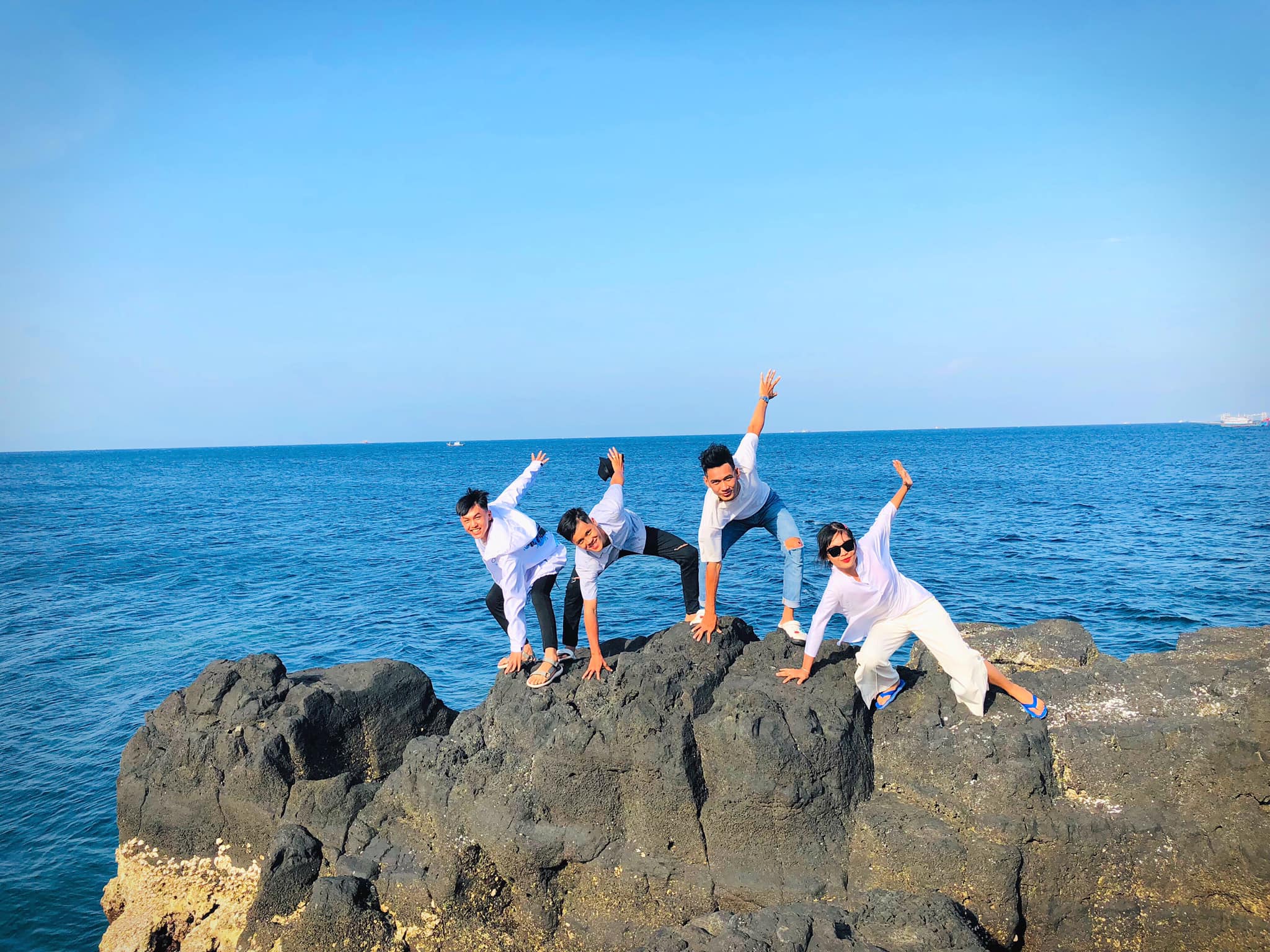 Ngày 4: Tận 10h mới bước ra khỏi nhà, ngủ quá ngủ kiểu này là ăn trưa xong mới đi chơi, chơi này thì cũng kiểu sống ảo là hết 1 buổi rồi, loay hoay tới chiều, tới Bãi Nhỏ, ngay cột cờ Phú Quý, kiểu như view trong phim Hậu duệ mặt trời Hàn Quốc luôn, tắm biển tới 6h30 mới về tắm lại sạch sẽ dắt nhau đi mua bánh sinh nhật bạn trong nhóm, ăn ở Quán Ăn Tài, ăn xong về lại homestay cắt bánh rồi qua ăn với cô chủ nhà.