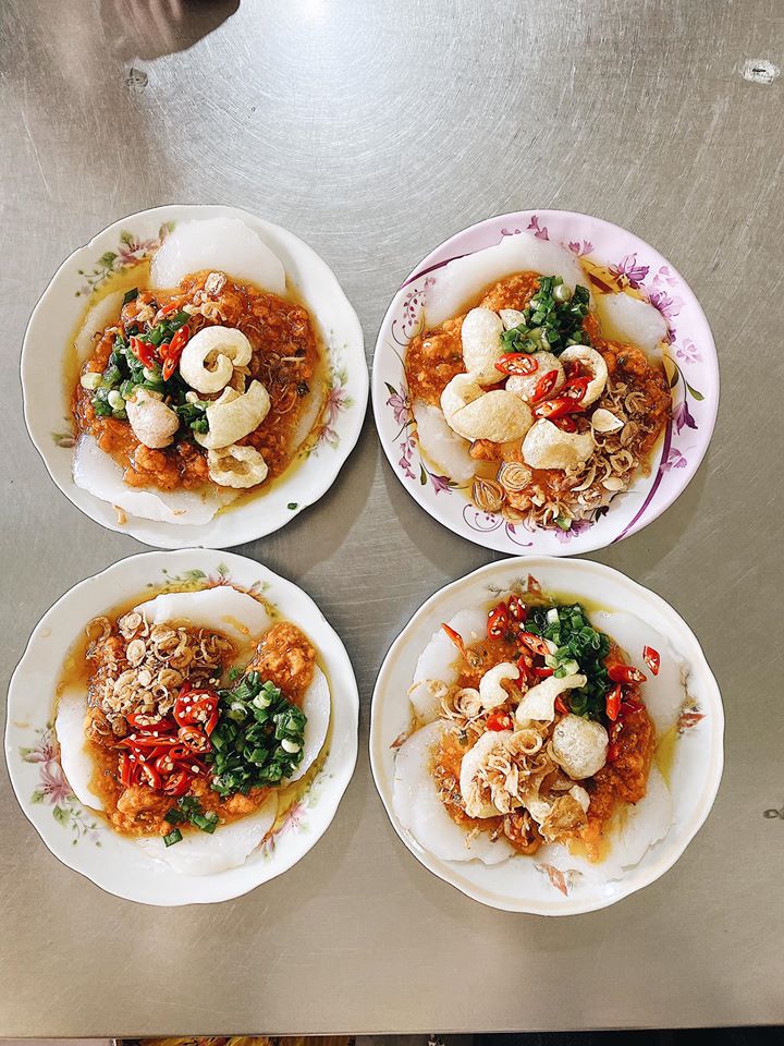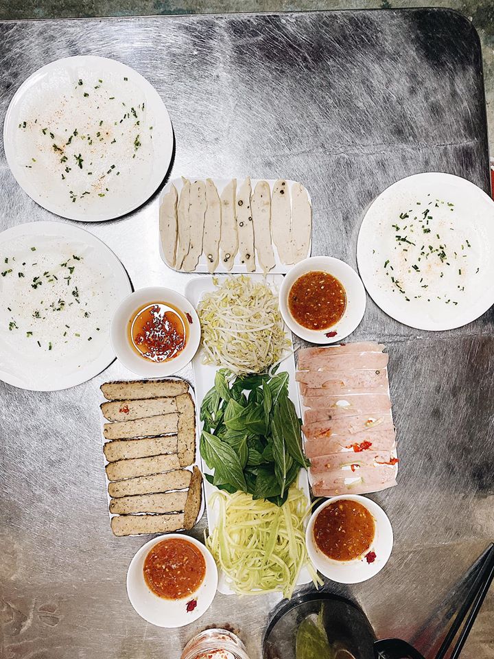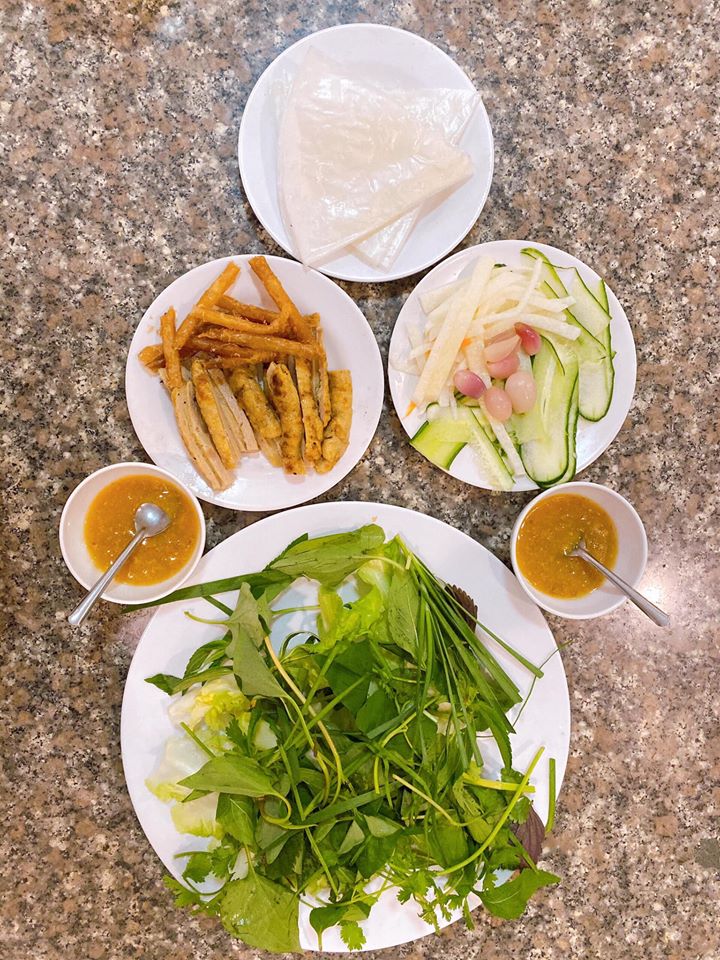 Nghỉ ngơi 1 chút chiều lại tiếp tục food tour bằng xe căng hải, đi bộ tới quán bánh ướt chồng ở hẻm 327 Hai Bà Trưng /quán này các bài review toàn ghi là hẻm 85 nhưng do Đà Lạt có đợt đổi số nhà nên quán bánh ướt này nằm ở hẻm 327 mới nhé. Bánh ướt tính tiền theo dĩa, có 3 loại đồ ăn kèm là nem chua, nem nướng và giò, nên gọi đủ hết 3 loại để ăn thử nhé, còn bánh thì mang ra liên tục nên khi nào không ăn nữa thì các bạn nhớ dặn dừng bánh nha.
