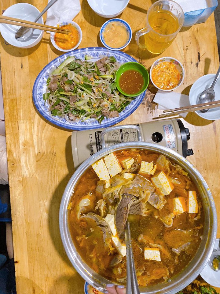 Đi Kombi land xong về khá mệt vì đường xấu nên chúng mình nghỉ ngơi 1 chút rồi lại tiếp tục hành trình ăn dzọng/nguyên tuần 1 ngày ăn 5 cữ luôn á các bạn ơi. Lết đi ăn bánh tráng nướng và lẩu gà lá é mà đủ quán nghỉ bán luôn á, may có mấy quán vẫn mở nên cũng không bỏ lỡ việc ăn dzọng này. Ghét ăn quán Tao Ngộ vì nó xô bồ, thái độ phục vụ kì cục nhưng mấy quán guột đóng cửa nên cũng đành chui zô. Sau khi ăn bánh tráng + lẩu xong thì như thói quen chúng mình lại vào Liên Hoa/đề nghị Liên Hoa làm thẻ thành viên chứ cúng tiền quá nhiều rồi ạ. Từ Liên Hoa thì đi bộ ra kem bơ Thanh Thảo gần khách sạn để đánh chén tiếp, kem bơ thì luôn ngon nên mỗi người chén thêm 2 ly nữa. Sơ sơ ngày 2 chắc cũng tiêu như ngày 1 vì bị tiền taxi è đầu.