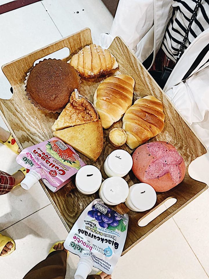 Bánh mì Liên Hoa: tầm 180k (Bánh bò dừa: 2c, Bánh mì hàn quốc: 3c, Bánh su tròn: 8k, Bánh su dài: 10k, Bánh mì chà bông: 1c, Bánh blan chuối: 1c, Bánh trứng: 1c