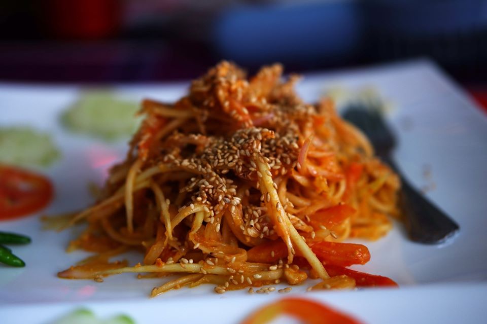 17h00: Mắt đã mãn nhãn, chân cũng đã mỏi thì tới lúc phải cho bụng nó ăn. Nhóm ghé vào nhà hàng trong siêu thị trên đường về khách sạn. Gọi món bún tôm nhìn có vẻ bắt mắt và khá nhiều đồ ăn nhưng ngược lại khẩu vị của nó lại không ngon với giá 5.000kyats/1phần (khá mắc cho chất lượng).