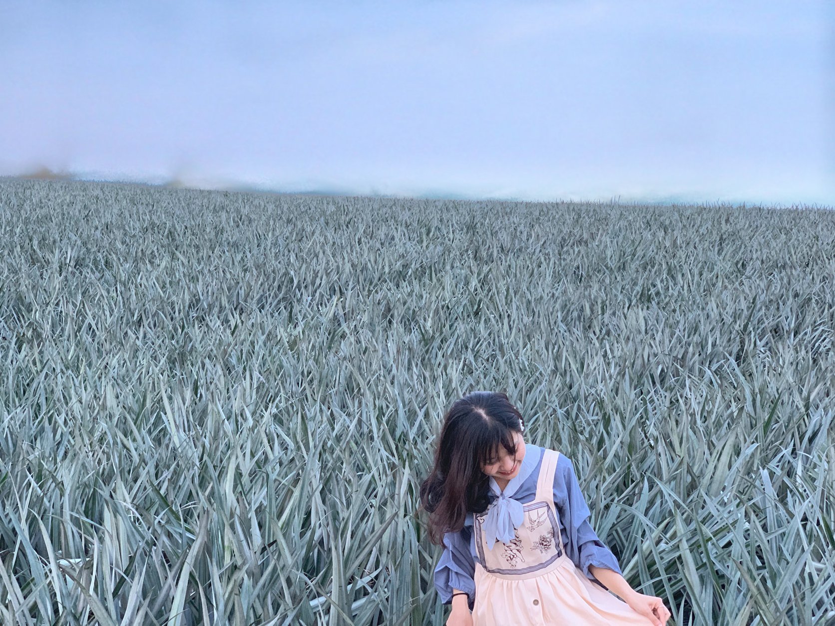 15h30 xong bọn mình đi về đồi dứa lại 1 quãng đường dài dằng dặc nữa, đã thế mình còn search maps ngu đi bị ngược đường nên khá tốn thời gian di chuyển. 16h15 đến đồi dứa. Đồi dứa thì mọi người hỏi thăm chỗ chụp ảnh cây trái tim hoặc quán nước nhà chị Dung. Do điện thoại bạn mình hết pin mà chụp ảnh bằng máy nó nên bọn mình vào quán nước nghỉ ngơi tiện sạc pin luôn.