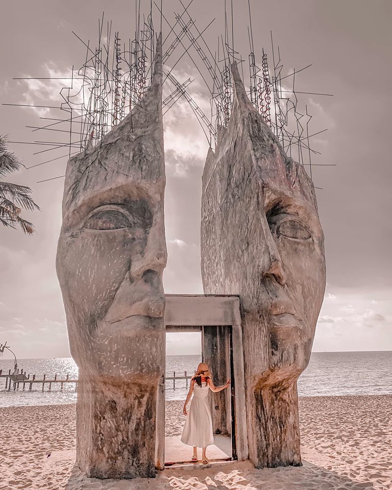 Từ Dương Đông nếu bạn muốn đến Sunset Sanato Beach Club Phú Quốc thì cứ chạy theo đường Trần Hưng Đạo về hướng Nam (hướng ra sân bay) khoảng 15km sẽ tới. Giá vé 100k/1ng. Đây cũng là điểm check-in nổi tiếng nhất ở khu vực này. Công trình nghệ thuật được đặt ngay trên bãi cát của Bãi Trường, mặt hướng về đất liền, ở giữa tượng là cánh cổng nhỏ để hoàng hôn xuyên qua, mở ra khung cảnh biển xanh, nắng vàng nên thơ. Tất cả khung cảnh sẽ làm nền cho bạn thả dáng với hàng trăm kiểu pose ảnh sáng tạo. Chẳng cần phải là thợ chụp ảnh chuyên nghiệp, bất kỳ ai chỉ cần đứng vào góc đó, căn lúc hoàng hôn xuống giơ máy lên, vậy là có bức ảnh hàng 100 like rồi.