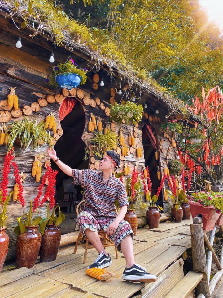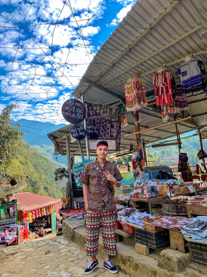 8:00 Mình đi Bản Cát Cát. Cả chiều đi lẫn chiều về của mình là 150k. Ở đầu bản có khá nhiều địa điểm cho thuê trang phục dân tộc để chụp ảnh. Mình được a ý giới thiệu thuê đồ dân tộc ở cửa hàng Art House. Giá thuê đồ ở đây là 50k. Thay đồ xong mình vào bản, giá vé vào bản là 70k/ người.